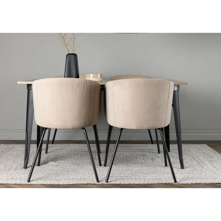 - Ideelle dimensioner: Bordmål 140×80 cm, stolmål 55x78x55 cm.