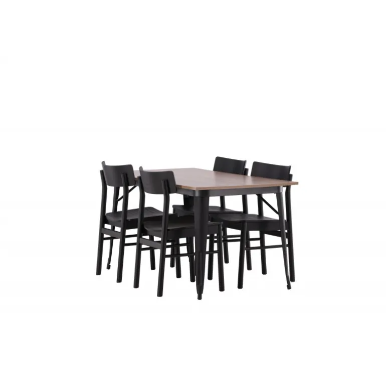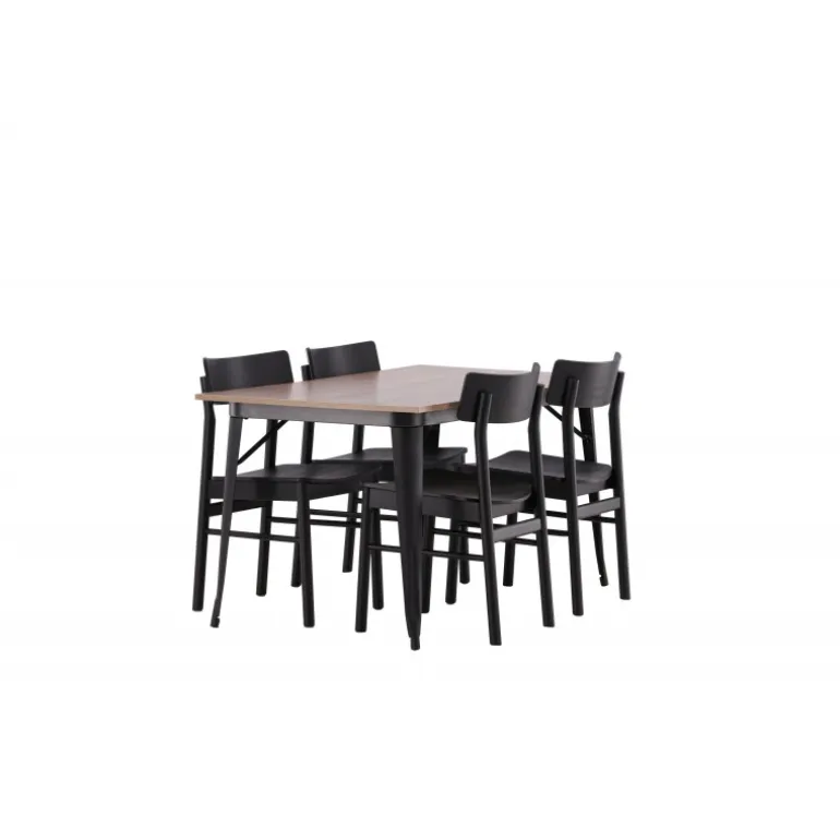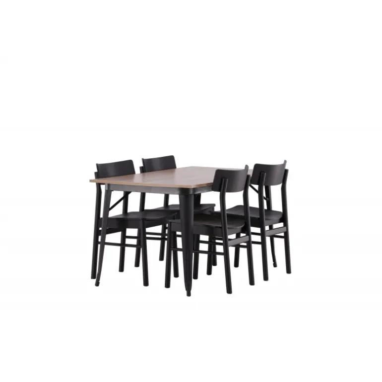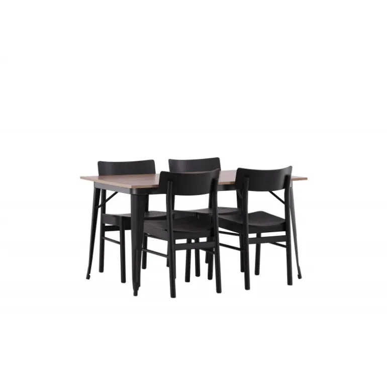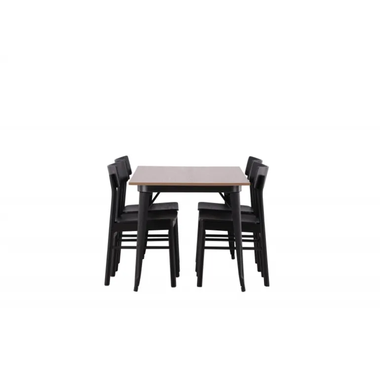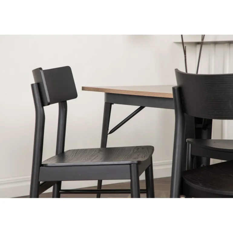 En vidunderligt matchende Spisebordssæt med alle de rigtige funktioner! Spisebordet fra Tempe-serien tilhører Venture Home kollektionen og har et iøjnefaldende, skandinavisk design. Fremstillet med en kvadratisk bordplade i sort MDF og bordben i sort metal. Her i perfekt kombination med vores populære spisebordsstole Montros. Stolen har et klassisk og nostalgisk design med lige nordiske former, alt sammen lavet af sort træ. Indret din stue klassisk og indbydende!