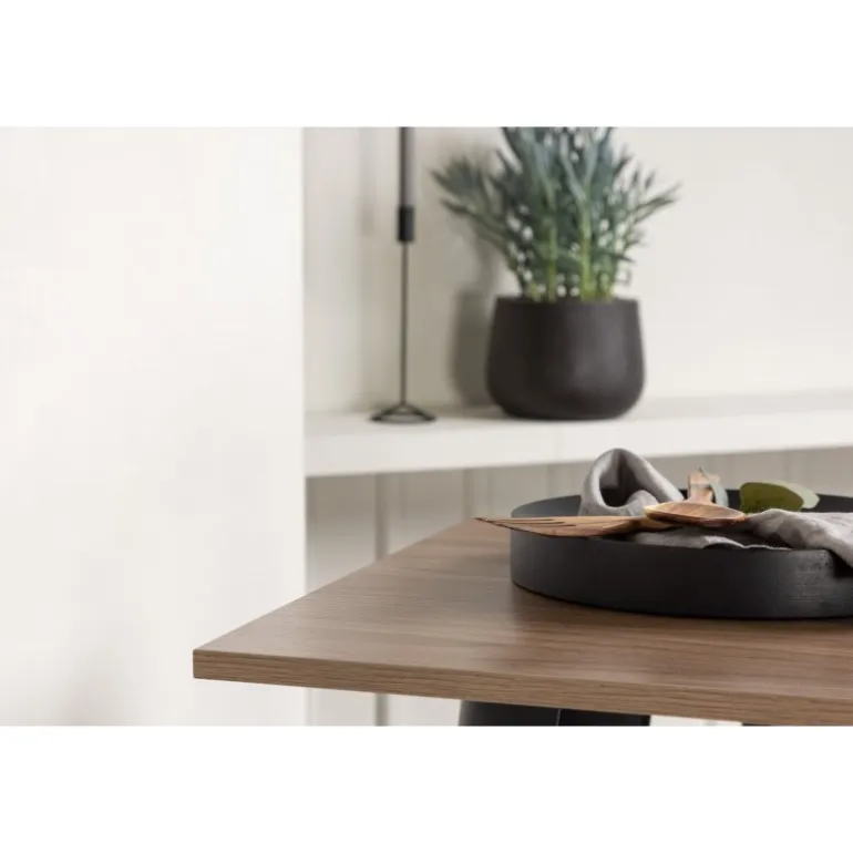 - Kvalitetsmaterialer: Bordplade i MDF og ben i sort metal.