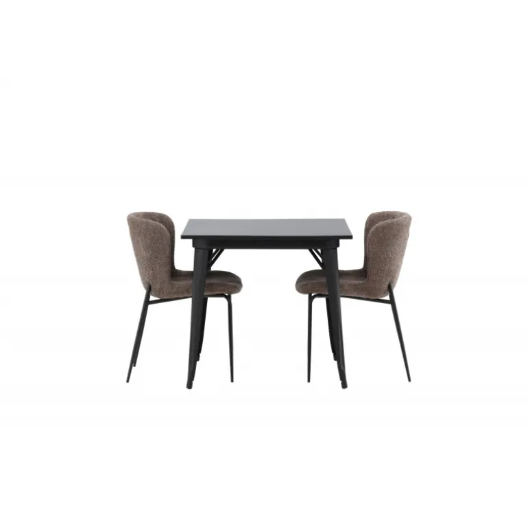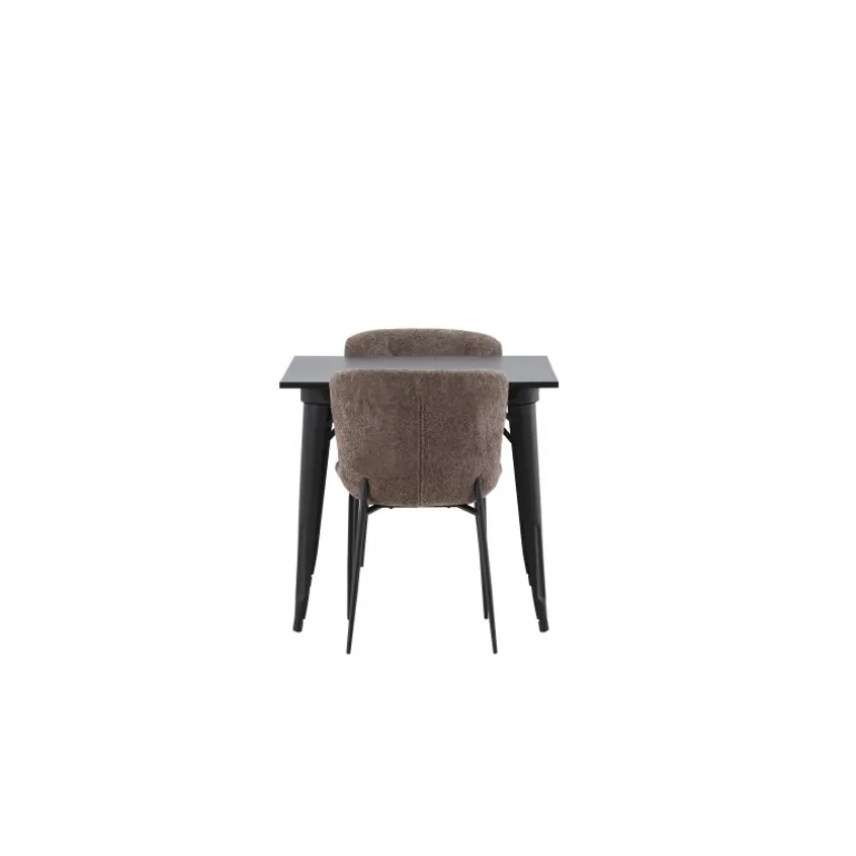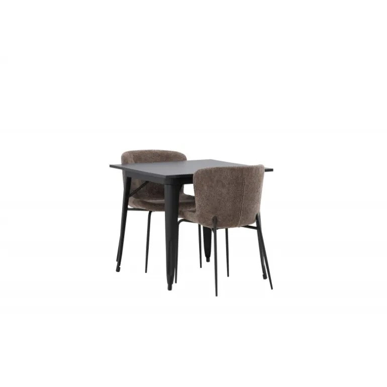 Et moderne og charmerende spisestuesæt – indret dit hjem smart og stilfuldt! Dette spisebord fra Tempe-serien har et klassisk, kvadratisk design og en tidløs sort farve. Bordpladen er i sort MDF og benene i sort metal. Her i perfekt kombination med vores komfortable spisebordsstole fra Modesto-serien i skandinavisk design. Stolen er fuldt polstret i gråt bouclé stof med stilfulde, smalle ben i sort metal. Den let afrundede ryg og polstrede sædehynde giver ekstra komfort og gør måltiderne omkring spisebordet endnu mere behagelige. Det skal føles godt at sidde ned til et dejligt måltid!