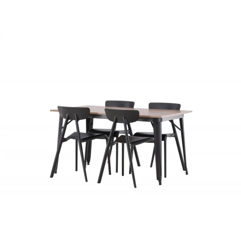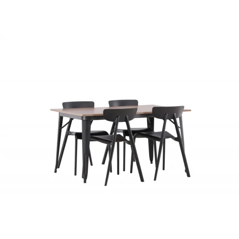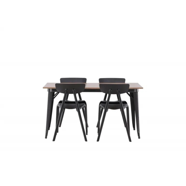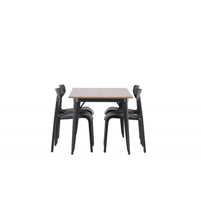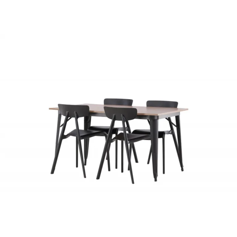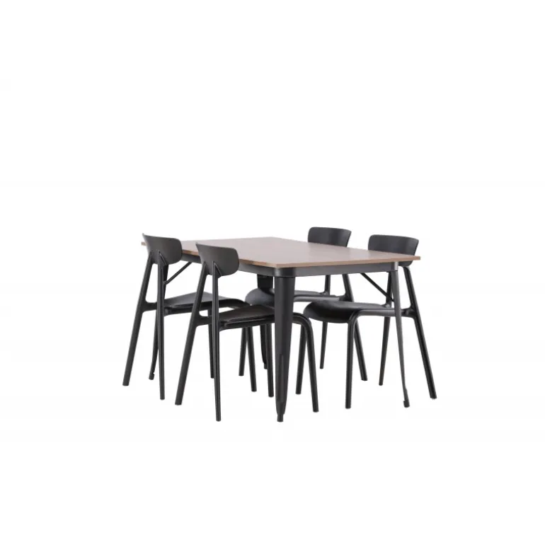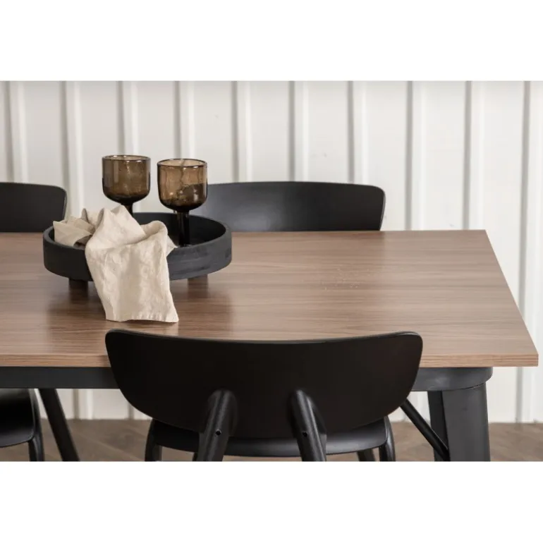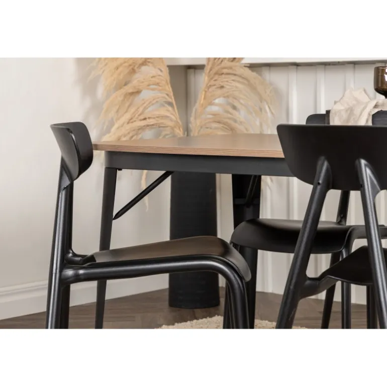 Undgå at gå på kompromis mellem klassisk stil og moderne design. Spisebordet fra Tempe-serien tilhører Venture Home-kollektionen og har et iøjnefaldende, skandinavisk design. Fremstillet med en firkantet bordplade i sort MDF og bordben i sort metal. Her sammen med vores smagfulde stole fra Ursholmen-serien. Disse sorte stole i holdbar plastik har en tidløs sort farve og elegante former, der passer perfekt til bordet. Nyd hyggelige måltider fremover!