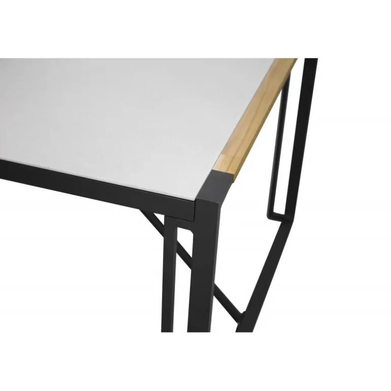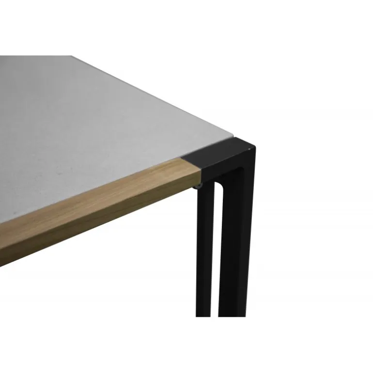 - Trendy design: Rektangulær glasbordplade med teak kant, sort metalunderstel.