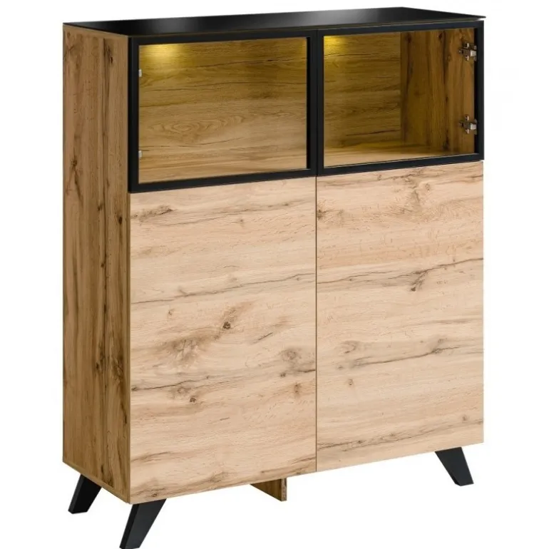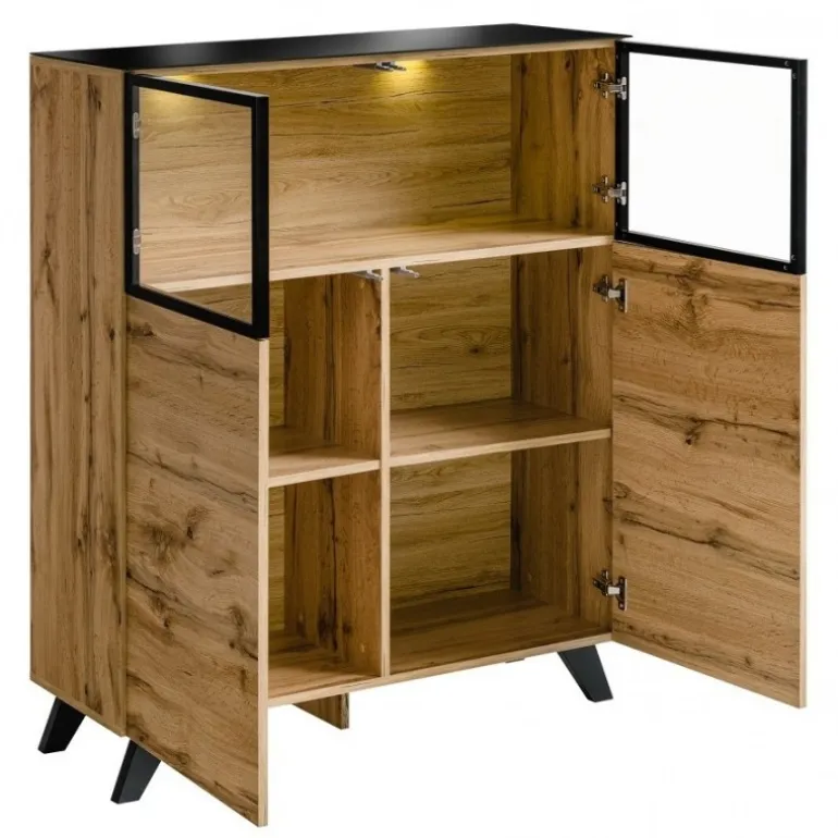 - Høj vitrine med glaslåge og LED-lys
