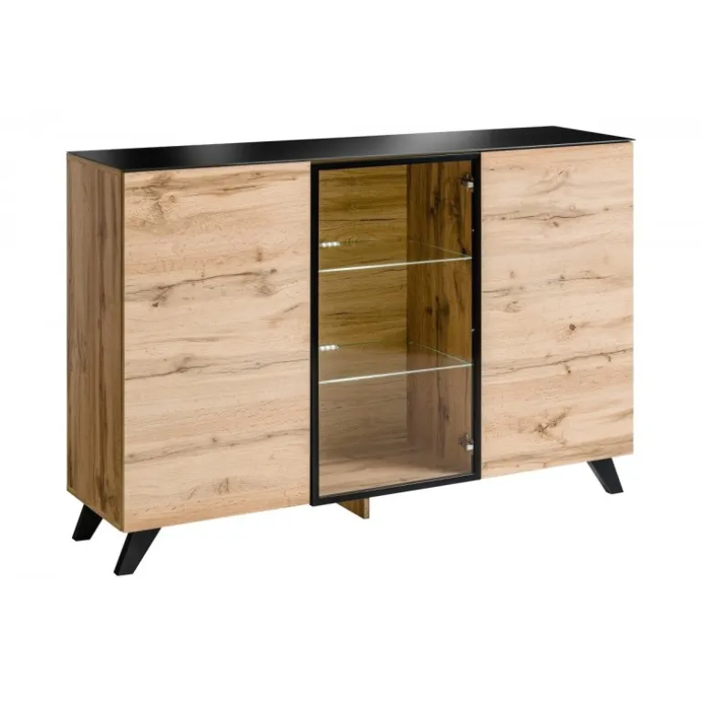 - Lav vitrine med glaslåger og LED-lys