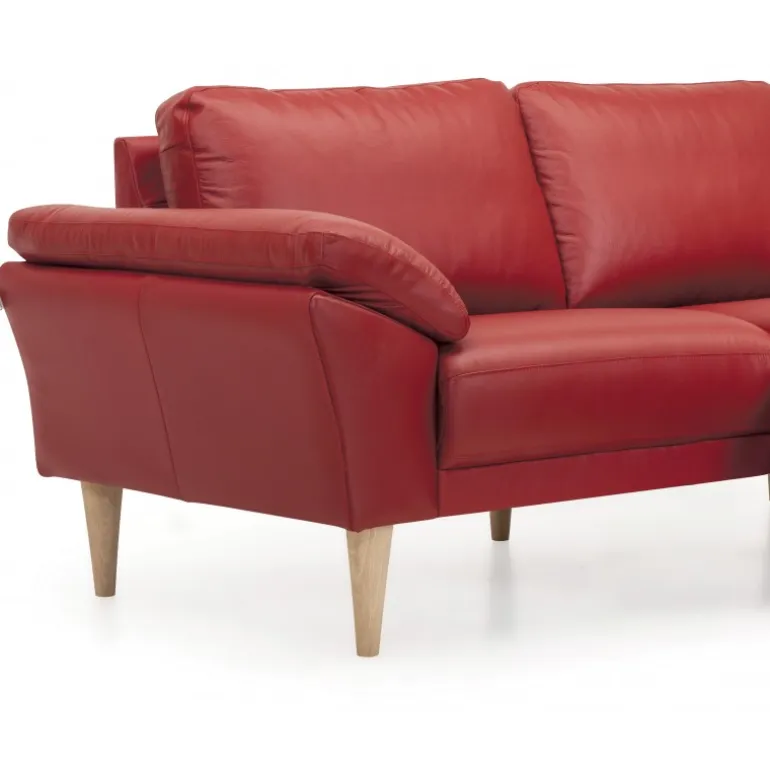 Denne sofa er en skønhed med sin bløde og runde form på armlænene, og de flotte ben muligheder, der giver en luksuriøs følelse til enhver stue. Den er tilgængelig i forskellige lædertyper og farver, der passer til enhver smag og indretning.