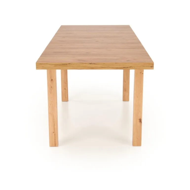 Oplev TIAGO 2 Spisebord med udtræket, et elegant og funktionelt møbel, der passer perfekt ind i enhver spisestue. Med dimensionerne 140-220/80/77 cm kan dette bord nemt udvides for at imødekomme flere gæster. Bordpladen er fremstillet af lamineret MDF med ABS-kanter, hvilket sikrer holdbarhed og en smuk finish. Benene er også lavet af lamineret MDF, alt sammen i den stilfulde farve craft oak. Dette bord er ideelt til både hverdag og særlige lejligheder.