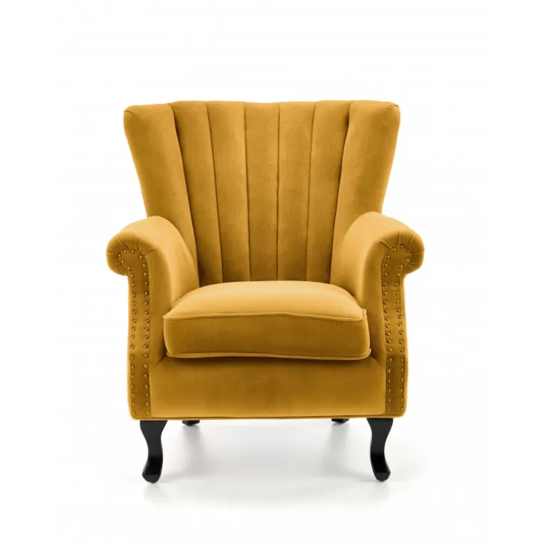 Køb nu og tilføj et strejf af luksus til din stue med TITAN stolen i sennepsfarve!