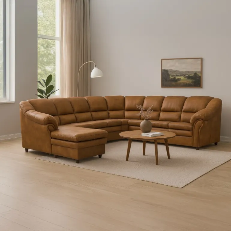 Rummelig hjørnesofa med venstrevendt chaiselong og god plads til hele familien