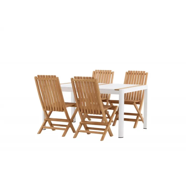 - Holdbarhed: Aluminium ruster ikke og teak er vejrbestandigt