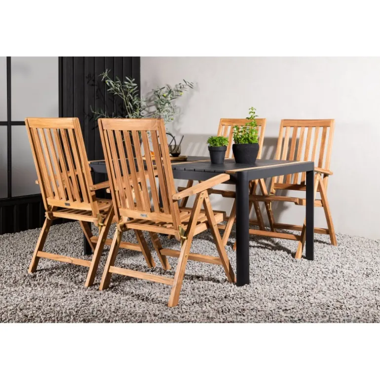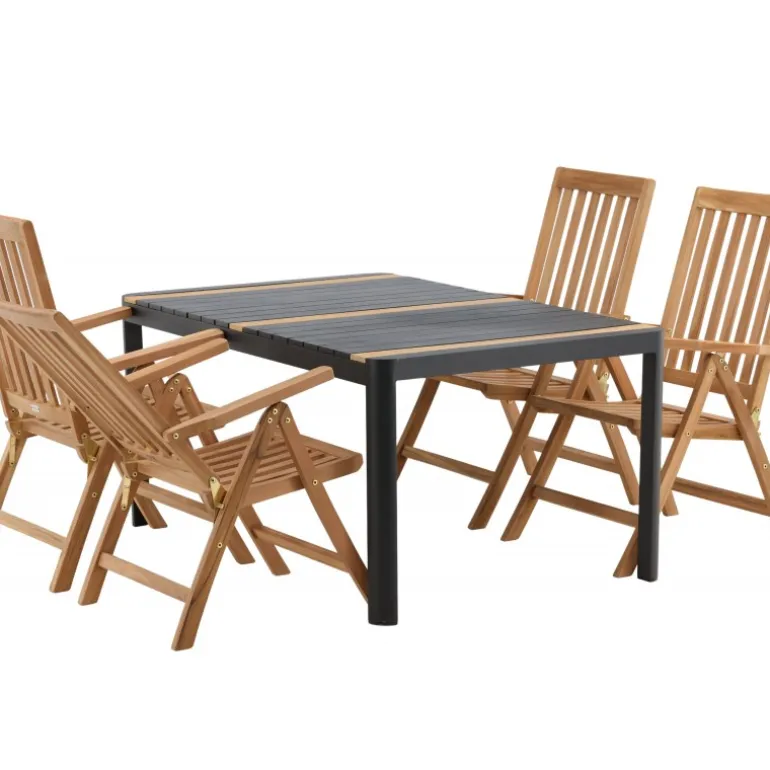 - Materiale: Teak og aluminium for holdbarhed og stil.