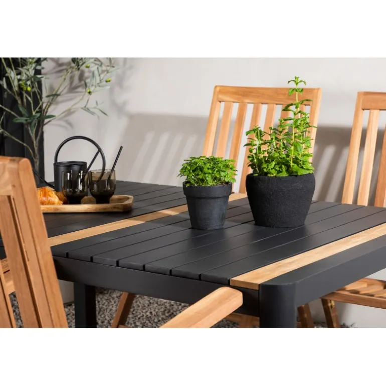 - Unikhed: Kombinationen af teak og sort aluminium skaber et unikt og moderne udtryk.