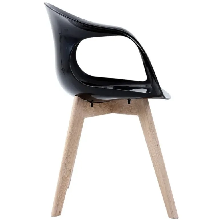 Tomcat spisebordsstol med blank sort plast sæde, og egetræsstel.