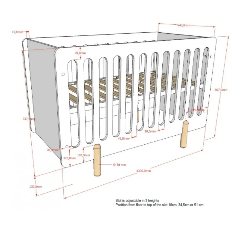 - Justerbar lamelbund, der følger barnets vækst