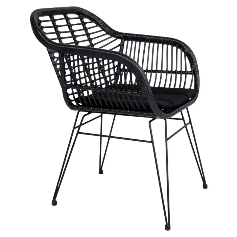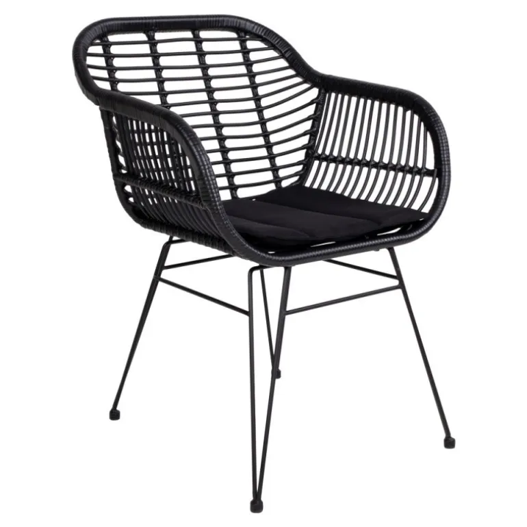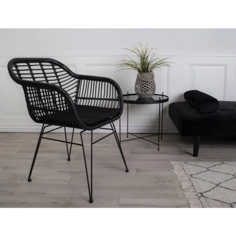 Stol i sort rattan med hynde
