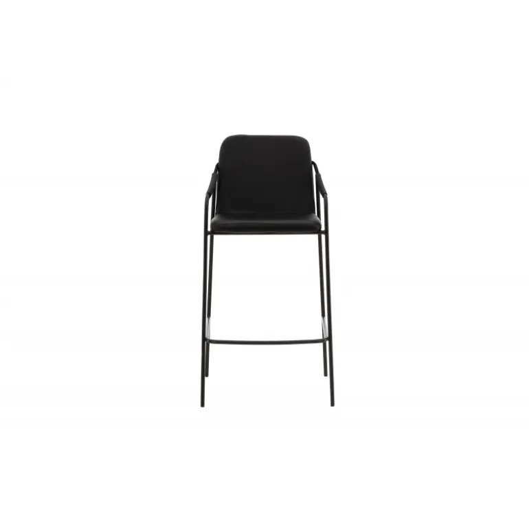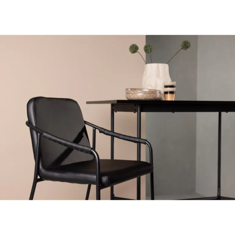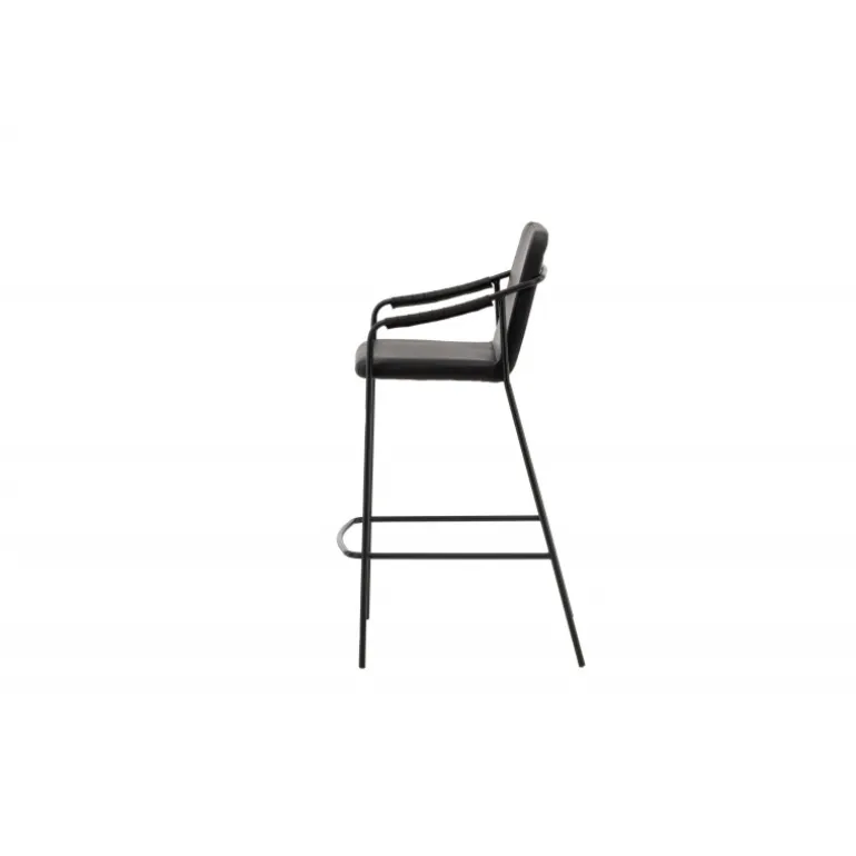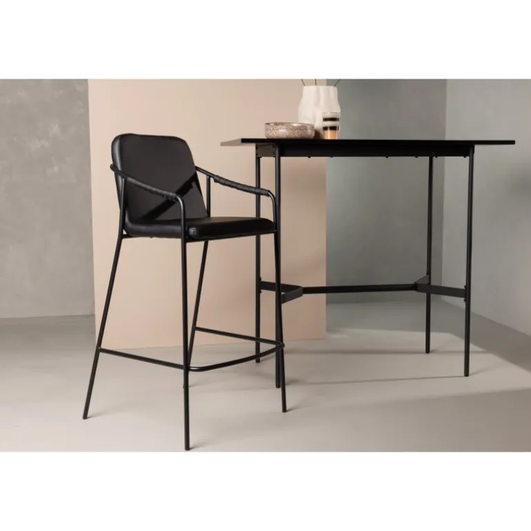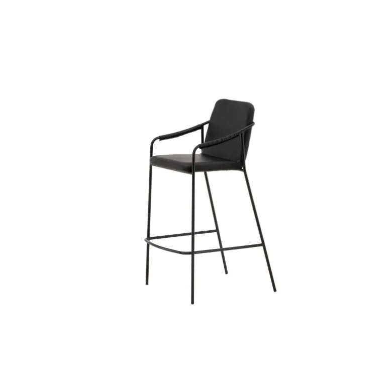 En moderne barstol fra serien TVIST, der passer perfekt ind i det moderne hjem! Denne barstol har en polstret sæde og et fuldt beklædt design i sort PU med minimalistiske stoleben og integrerede armlæn i sort stål. Placer den ved baren eller dit barbord og løft dine måltider til nye højder med en barstol, der hurtigt skaber en flot blikfang i dit hjem!