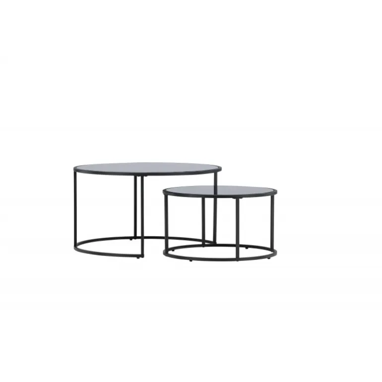 Twin sofabordet er et elegant og gennemtænkt møbel, der tilføjer et sofistikeret touch til din stue. Twin kommer med to matchende sofaborde i forskellige størrelser, hvilket giver en fleksibel og praktisk løsning til din indretning. Det mindre sofabord kan glat glide under det større, når det ikke er i brug, hvilket sparer plads og giver et stilfuldt look. Bordpladerne i sort glas og benene i stål skaber en moderne og elegant æstetik. Med en diameter på 79 cm for det store bord og 59,5 cm for det lille, og højder på henholdsvis 44 cm og 34 cm, tilbyder Twin et balanceret og harmonisk design. Twin sofabordene indbyder til afslappede øjeblikke og hyggelige samtaler i din stue. Det slanke design og den gennemtænkte konstruktion gør Twin til en elegant interiørdetalje, der skaber en indbydende atmosfære i dit hjem.