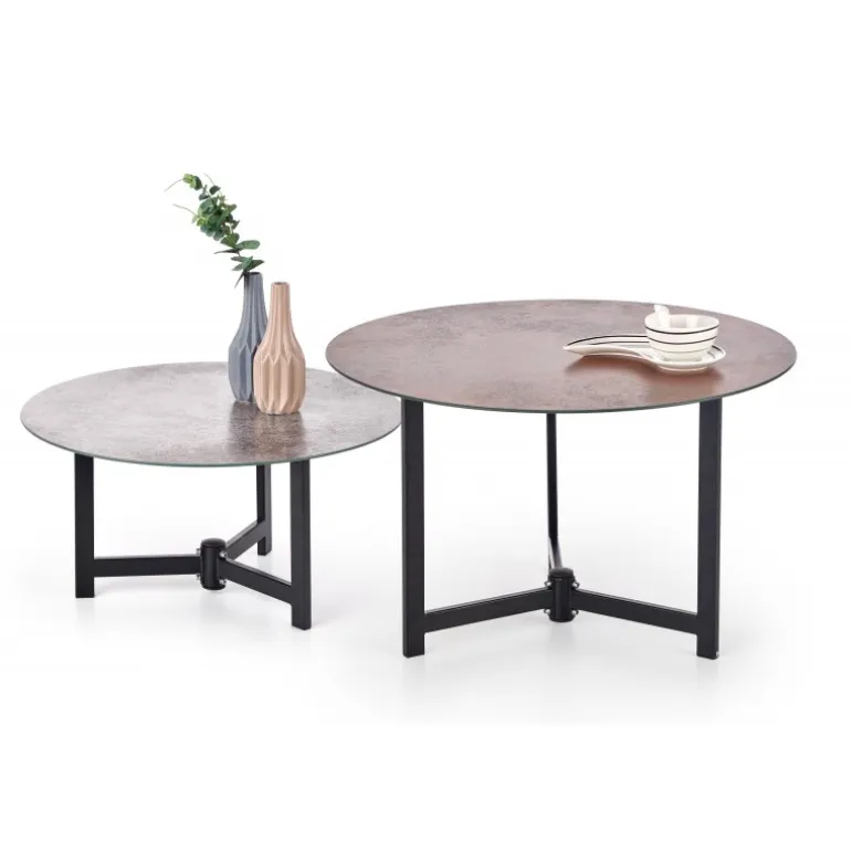 Oplev elegance og funktionalitet med vores TWINS sæt af to sofaborde. Designet til at passe perfekt ind i enhver moderne stue, disse borde kombinerer et stilfuldt stentekstureffekt glas med et robust pulverlakeret stålramme. Med dimensioner der inkluderer et stort bord (Ø70//43 cm) og et lille bord (Ø60//30 cm), tilbyder de alsidighed og praktisk anvendelse. De fås i farverne brun, grå og Sort, hvilket gør dem til et ideelt valg for enhver indretningsstil.