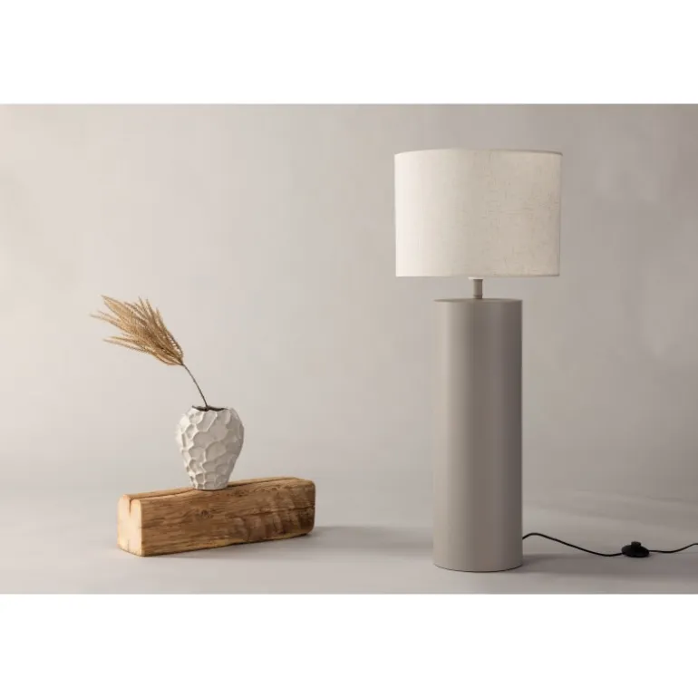 - Stilfuld design: Afrundet lampefod og lysegrå linnedskærm for et luksuriøst udseende.