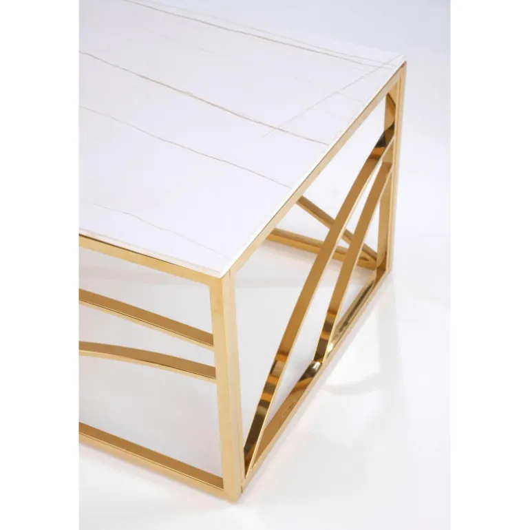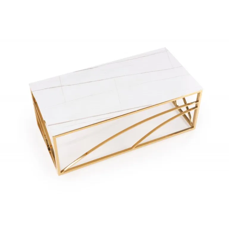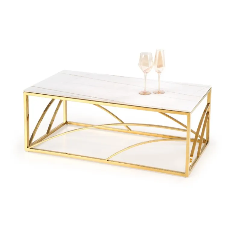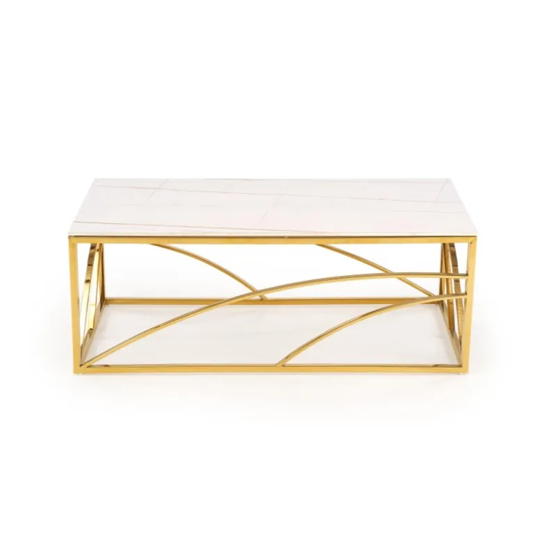 Oplev elegance og funktionalitet med UNIVERSE 2 sofabordet, perfekt til enhver moderne stue. Dette sofabord er fremstillet af holdbart sinteret sten og har en robust ramme af pulverlakeret stål, der sikrer langvarig brug. Den smukke hvide marmoreffekt kombineret med gulddetaljer tilfører et strejf af luksus til dit hjem. Med dimensionerne 120/60/45 cm passer dette bord ideelt ind i både små og store rum, og dets tidløse design gør det let at integrere med forskellige indretningsstile.