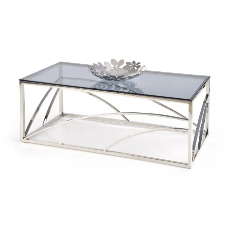 Oplev elegance og funktionalitet med UNIVERSE sølv sofabord. Dette sofabord, der måler 120/60/45 cm, er en perfekt kombination af glas og rustfrit stål, hvilket giver det et moderne og stilfuldt udseende. Den røgfarvede glasplade og sølvfarvede stel tilføjer sofistikation til enhver stue. Bordet er ikke kun æstetisk tiltalende, men også robust og holdbart, hvilket gør det ideelt til daglig brug.