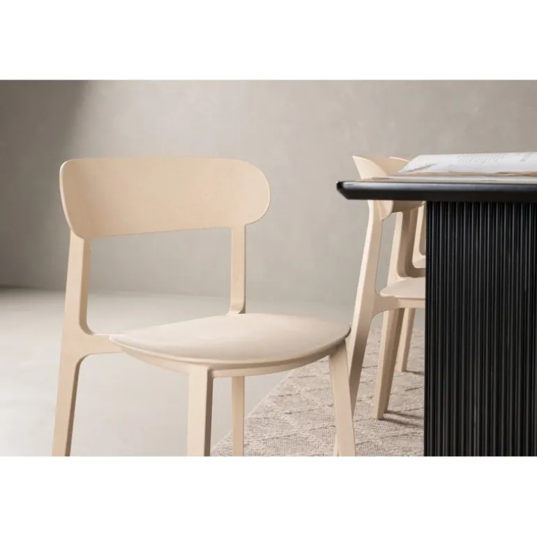 - Kombination: Bord og stole matcher perfekt i stil og farve.
