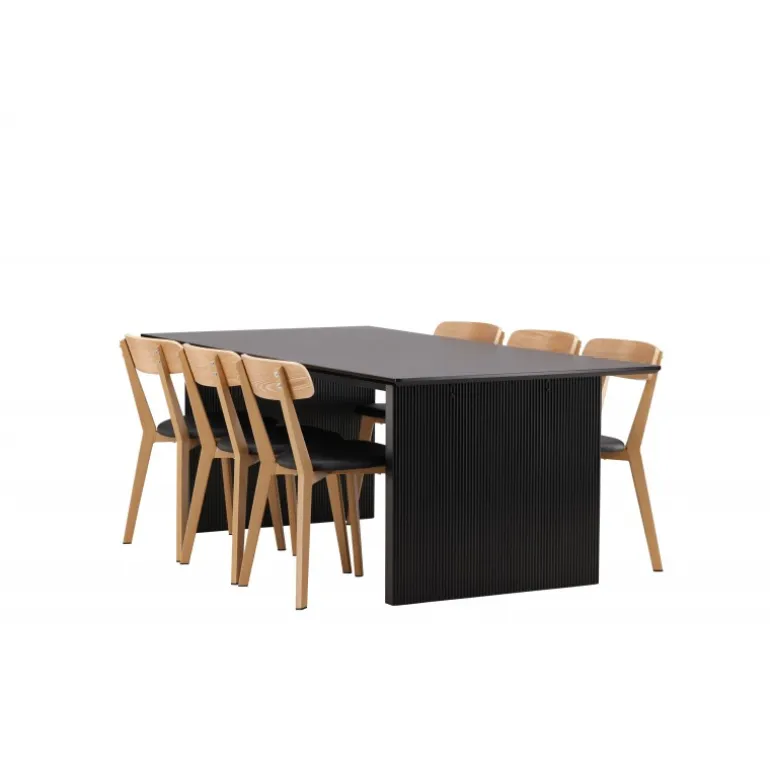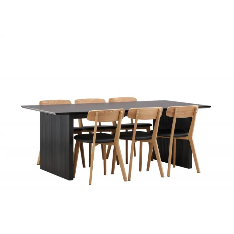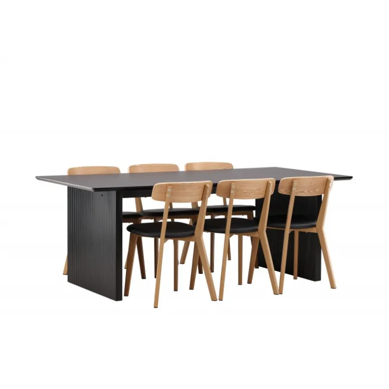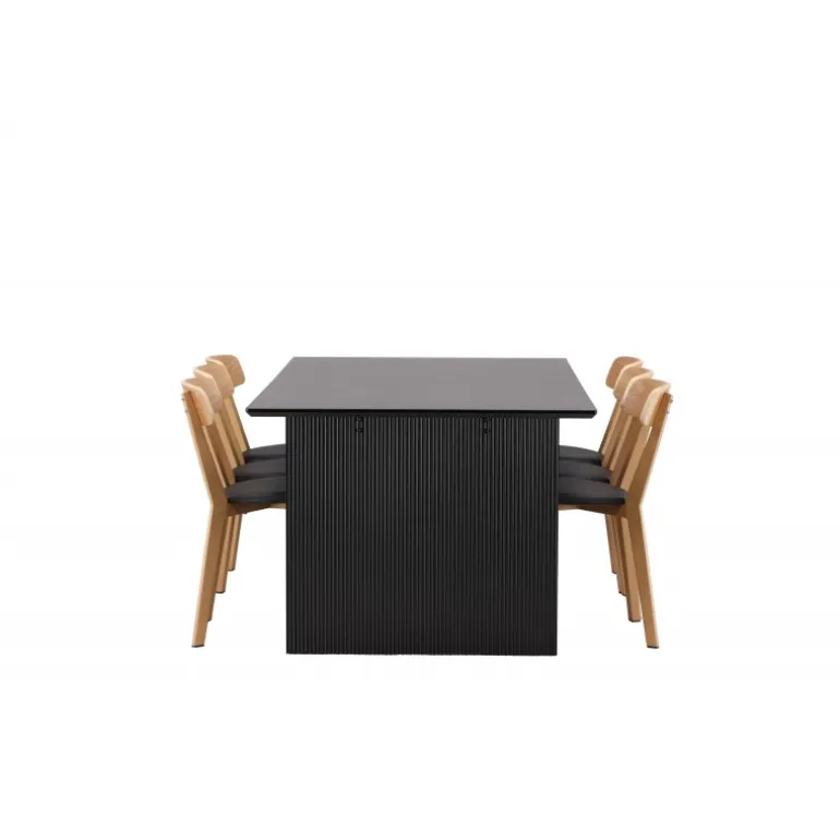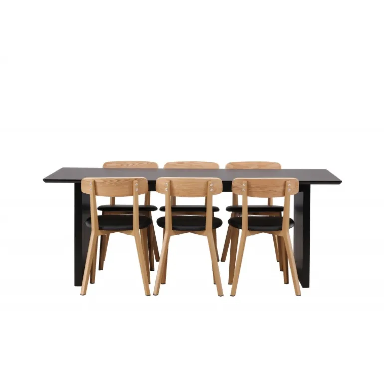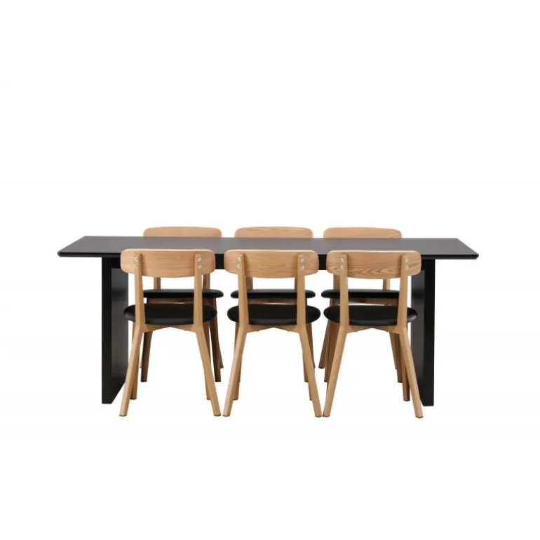 - Kombineret med Sanjos spisestole i sort PU-stof og naturtræ.