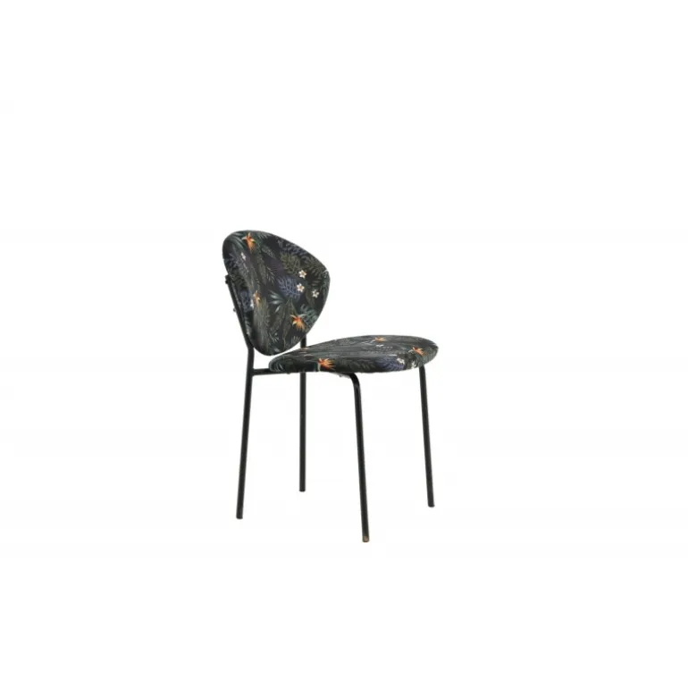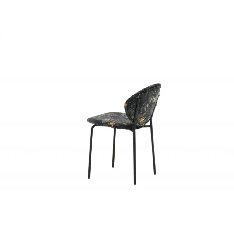 Skab et blikfang, der skiller sig ud med flerfarvede spisebordsstole fra Vault-serien! Denne spisebordsstol har en ramme og ben i pulverlakeret stål og et stilfuldt design med en rund ryg. Ryg og sæde er betrukket med sort blomstermønstret polyesterstof, der skaber et personligt indtryk i interiøret. Lettere samling kræves. Plejeråd: Fjern pletter med det samme, gnid ikke, men forsøg at suge op forsigtigt med en klud. Hvis pletterne ikke forsvinder, prøv en pletfjerner, som du først tester på en mindre synlig del af stoffet. Vi anbefaler, at større møbler skummes mindst tre gange om året.