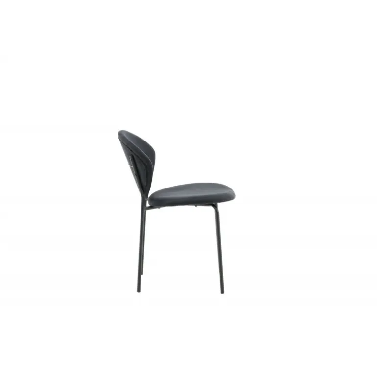 Tidløs spisestol i sort farve og minimalistisk design fra serien Vault! Denne lækre spisestol har en ramme og ben i sort pulverlakeret metal og en afrundet ryg. Ryglæn og sæde er polstret med sort polyesterstof. Dekoreret med komfortable stole, der er lige så stilfulde som praktiske med deres pæne størrelse! Lettere montering kræves. Plejeråd: Brug tekstilspray til at imprægnere tekstilet, før du begynder at bruge det, det vil også gøre snavs og pletter lettere at fjerne i fremtiden. Fjern pletter med det samme, gnid ikke men forsøg at opsuge forsigtigt med en klud. Hvis pletterne ikke går væk, prøv en pletfjerner, som du først har prøvet på en mindre synlig del af stoffet.