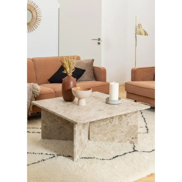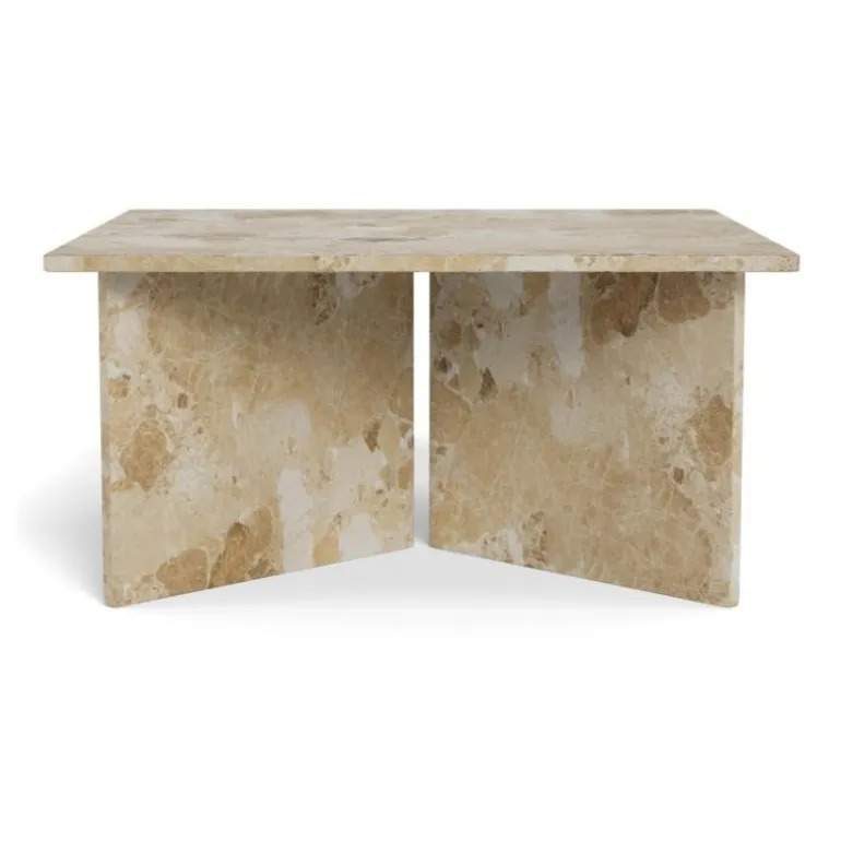 Firkantet sofabord, Top og v-formet Stel mat Latte lakeret marmor.