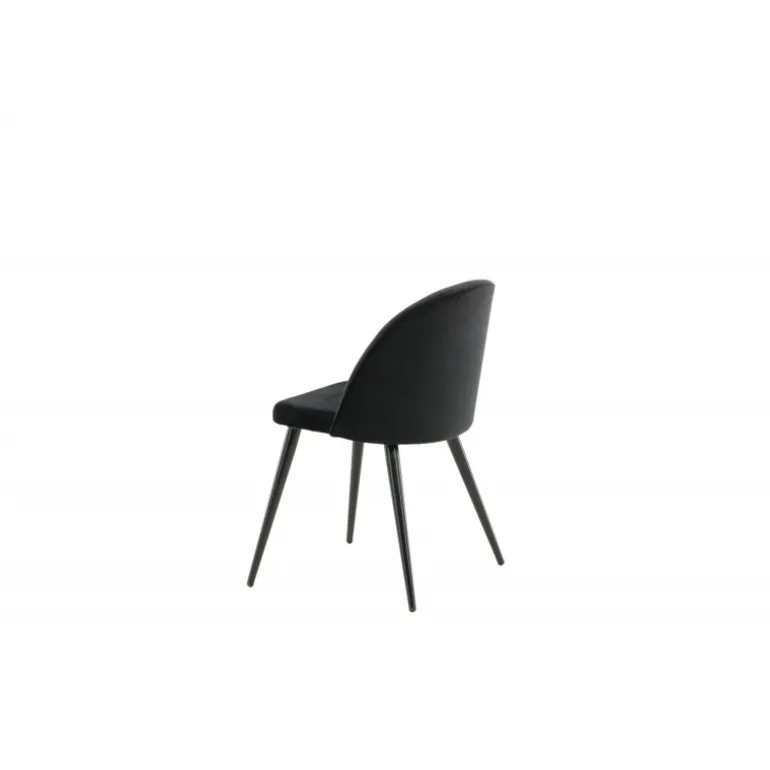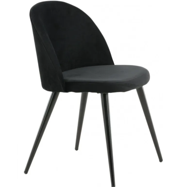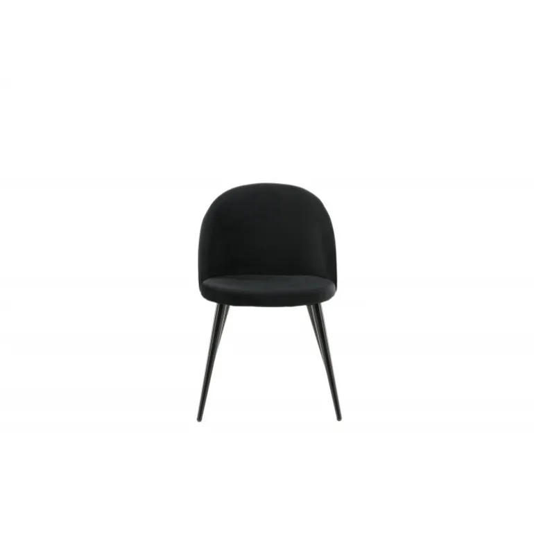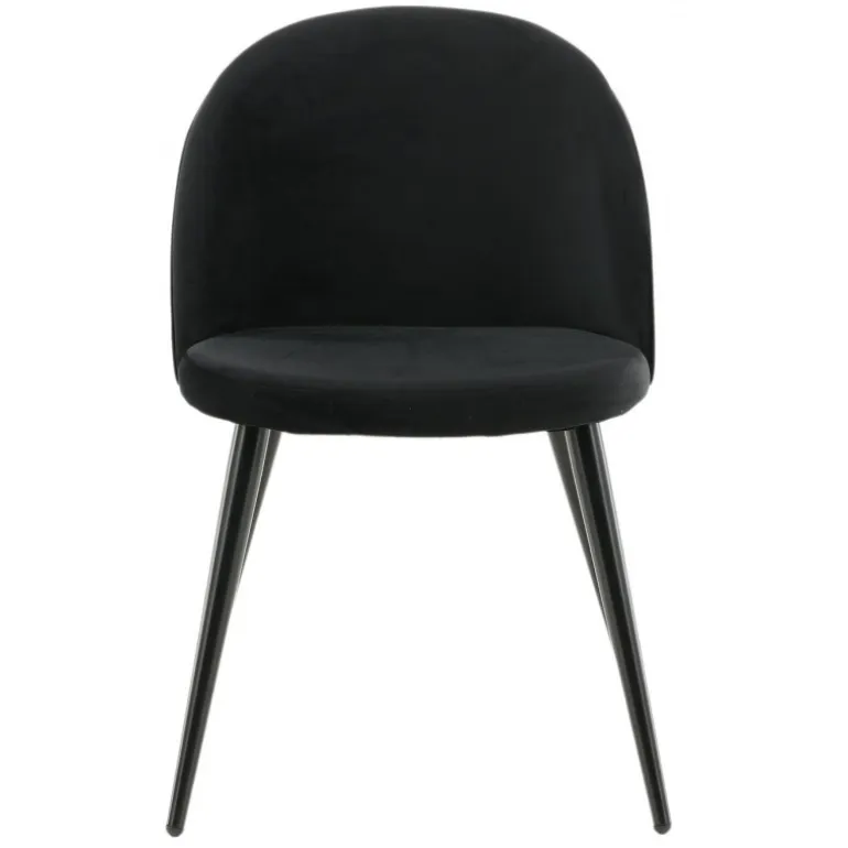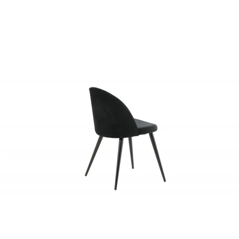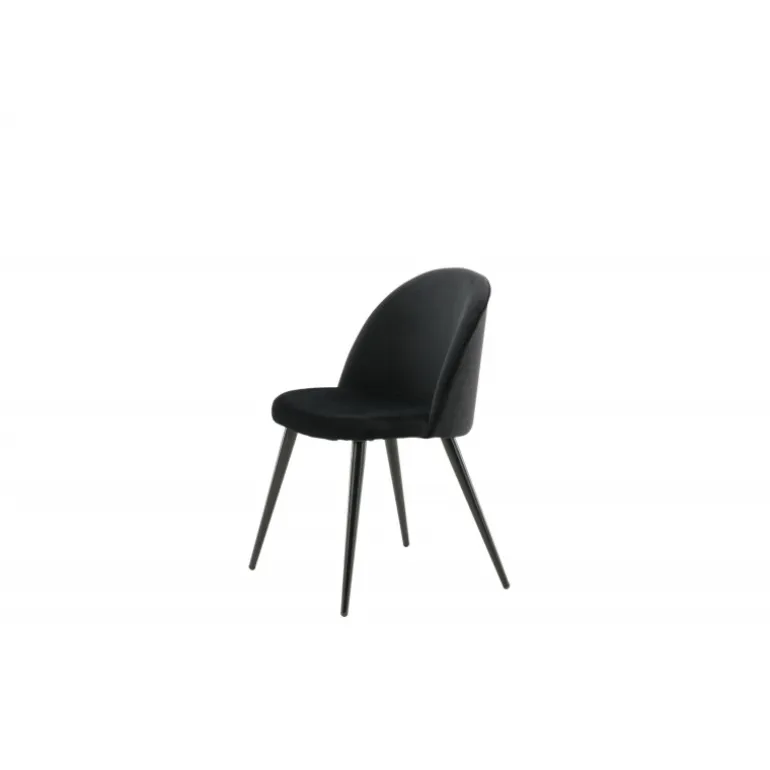 Stilfuld spisebordsstol i konsistent sort farve med moderne design – hvad mere kan man ønske sig? Den sorte spisebordsstol Velour har et fuldt polstret design, ben i sort pulverlakeret metal og en rundet ryg og sæde i sort Velour med blød polstring. Undgå kompromiser mellem komfort og design! Let samling påkrævet.
