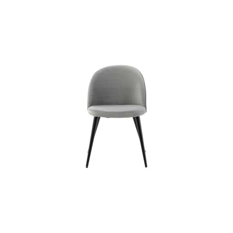 Stilfuld spisestol i en behagelig grå farve med moderne design – hvad mere kan man ønske sig? Velour har et fuldt polstret design, ben i sort pulverlakeret metal og afrundet ryg og sæde i gråt velourstof med blød polstring. Du behøver ikke at gå på kompromis mellem komfort og design! Let montering kræves. Plejeråd: Velour har en tendens til at få trykmærker, når luvet lægger sig ned. Aftrykkene kan få stoffet til at se slidt ud, hvilket er helt normalt for denne type materiale. Afhængig af hvordan lyset falder, kan stoffet ændre sig i forskellige nuancer.