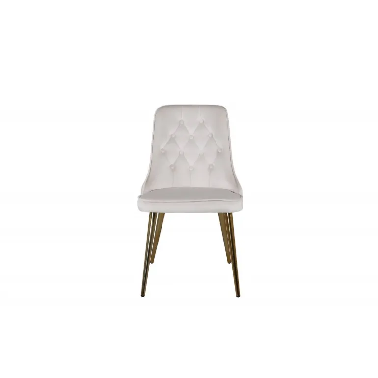 En cremehvid/beige stol fra Velvet Deluxe serien vil helt sikkert skabe en elegant blikfang i stuen! Stolen har et fuldt beklædt design i slank beige fløjlstof med knapper og dekorative stikninger i ryggen, som bliver til en fin detalje. Ben i messingbaseret metal og blød polstring i ryg og sæde for ekstra komfort. Let montering er påkrævet. Lad tiden her være dagens højdepunkt! Plejeråd: Fløjl har en tendens til at få trykmærker, når luven lægger sig ned. Aftrykkene kan få stoffet til at se slidt ud, hvilket er helt normalt for denne type materiale. Afhængigt af, hvordan lyset falder, kan stoffet skifte i de mest forskellige nuancer.
