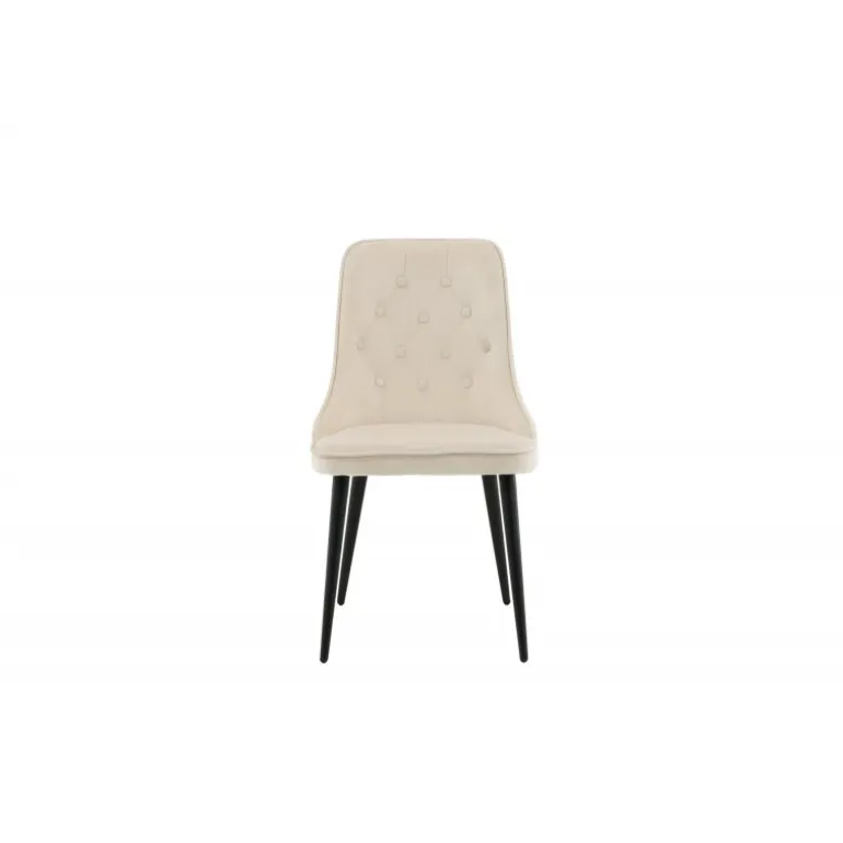 En cremehvid/beige stol fra Velvet Deluxe-serien vil helt sikkert skabe et elegant blikfang i stuen! Stolen har et fuldt polstret design i slankt beige fløjlsstof med knapper og dekorative sting i ryggen, som giver en flot detalje. Benene er lavet i sort pulverlakeret metal, og ryggen og sædet er blødt polstret for ekstra komfort. Lettere samling kræves. Lad tiden her være dagens højdepunkt! Plejeråd: Fløjlsstof har en tendens til at få trykmærker, når luven lægger sig ned. Aftrykkene kan få stoffet til at se slidt ud, hvilket er helt normalt for denne type materiale. Afhængigt af hvordan lyset falder, kan stoffet ændre sig i forskellige nuancer.