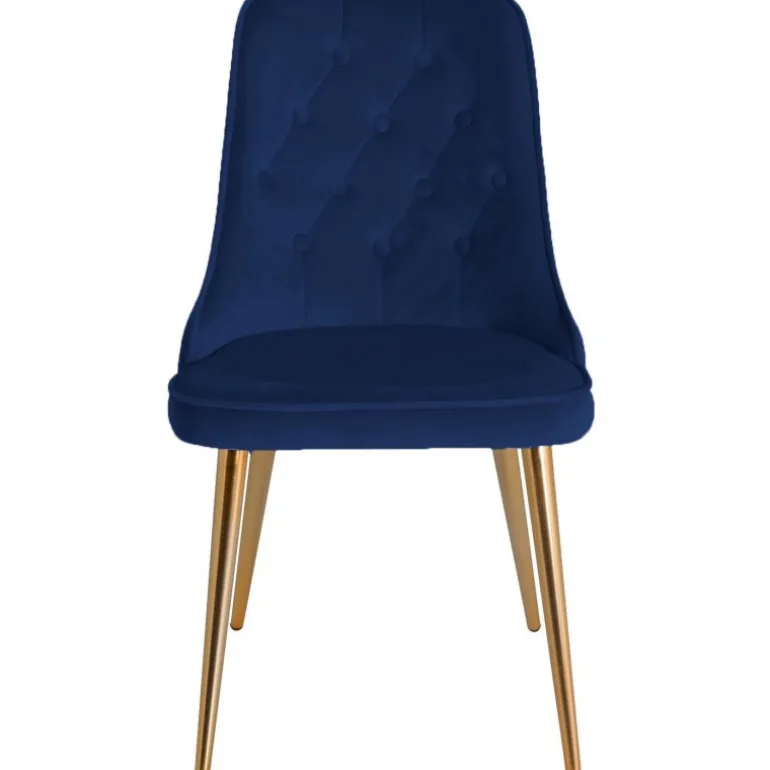 Indret hjemmets hjerte med spisebordsstole fra Velvet Deluxe-serien for et mere elegant fokuspunkt i stuen! Stolen har et fuldt polstret design i slankt blåt fløjlsstof med knapper og dekorative syninger i ryggen, hvilket tilføjer en stilfuld detalje. Benene er i messingbelagt metal og blød polstring i ryg og sæde for ekstra komfort. Sid både behageligt og stilfuldt! Nogle dele skal samles. Plejeinstruktioner: Fløjl har tendens til at udvikle trykmærker, når luven flades ud. Mærkerne kan få stoffet til at se slidt ud, hvilket er normalt for denne type materiale. Afhængigt af hvordan lyset falder, kan stoffet fremstå i flere forskellige nuancer.