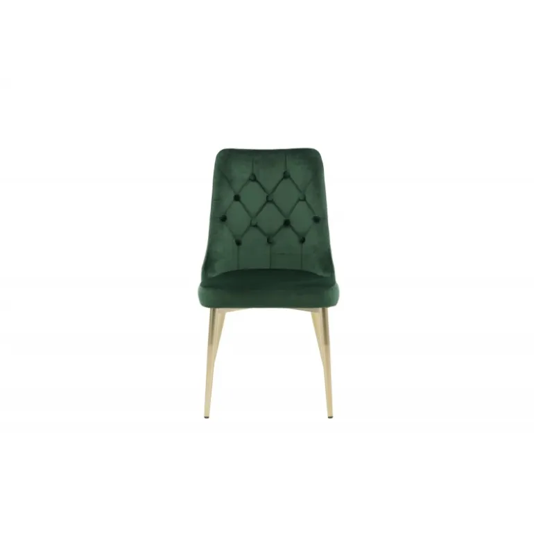 Skab en pompøs atmosfære i dit hjem med et par flotte skovgrønne spisebordsstole fra serien Velvet Deluxe. Stolen har et fuldt polstret design, ben i messingpoleret metal og en rundet ryg og sæde i lækker grøn velour med blød polstring og dekorative knapper. Lige så komfortabel som iøjnefaldende! Lettere montering kræves. Plejeråd: Velour har en tendens til at få trykmærker, når luven lægger sig ned. Aftrykkene kan få stoffet til at se slidt ud, hvilket er helt normalt for denne type materiale. Afhængigt af hvordan lyset falder, kan stoffet ændre sig i de mest forskellige nuancer.