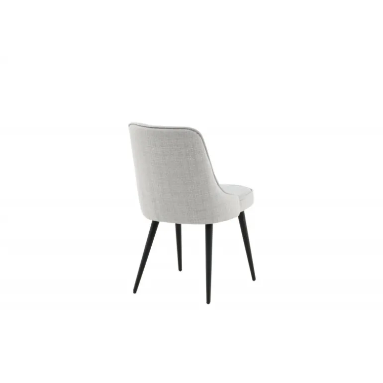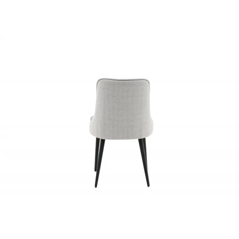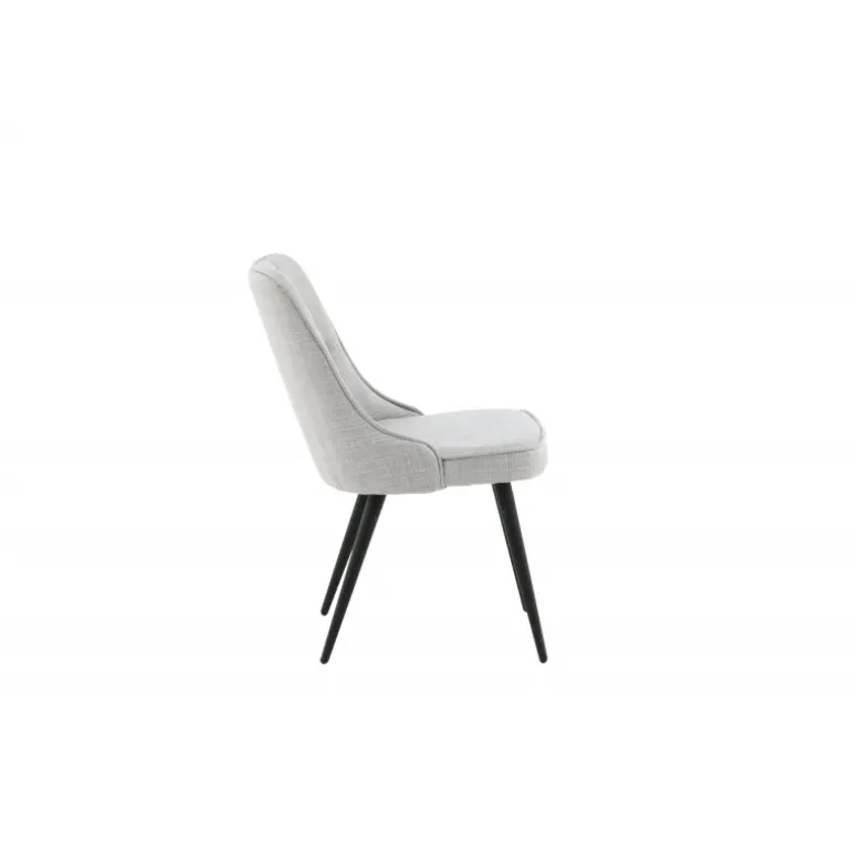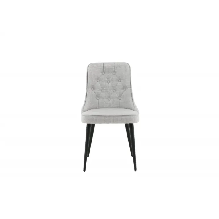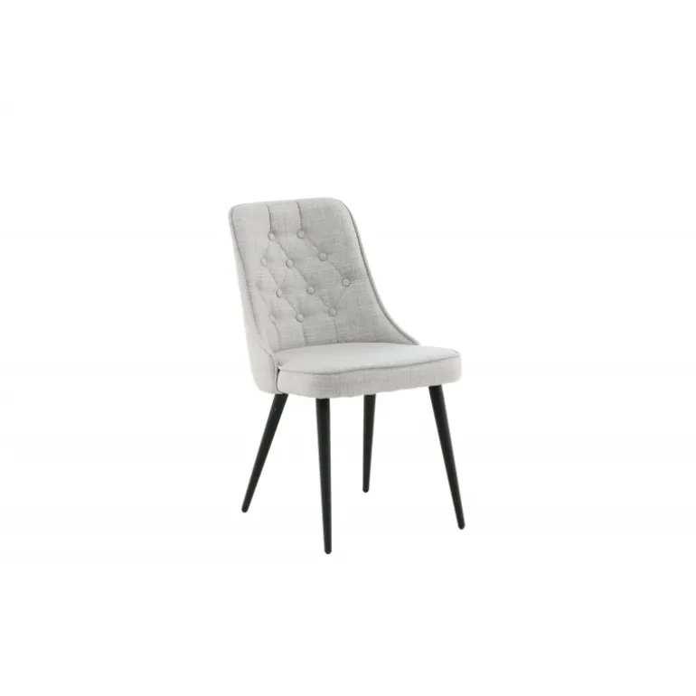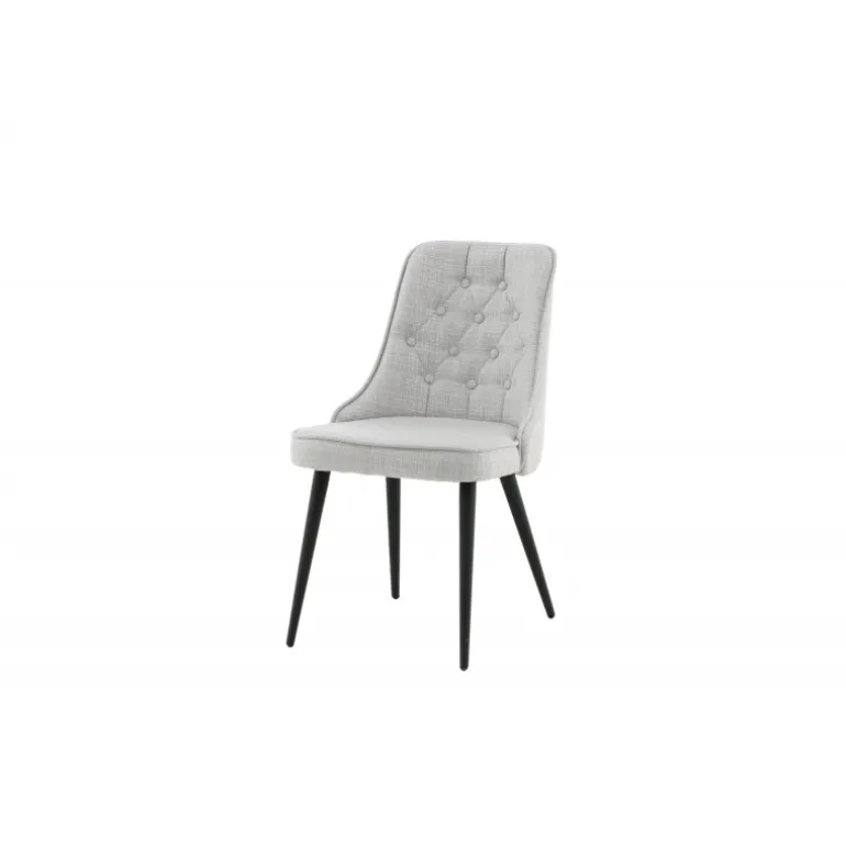 Komfortabel, stilfuld og holdbar spisebordsstol fra serien Velvet Luxury! Stolen har et fuldt polstret design i slankt gråt polyesterstof med knapper og dekorative syninger på ryggen, der skaber en flot detalje. Benene er i sort pulverlakeret metal, og der er blød polstring i ryg og sæde for ekstra komfort. Lettere samling er påkrævet. Skab en pompøs blikfang i stuen! Plejevejledning: Brug tekstilspray til at imprægnere stoffet, før du begynder at bruge det; det vil også gøre det lettere at fjerne snavs og pletter i fremtiden. Fjern pletter med det samme, gnid ikke, men forsøg at suge dem op forsigtigt med en klud.