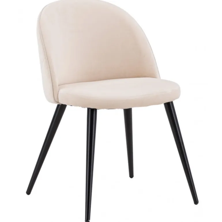Detaljer skaber helheden! Velour spisebordsstolen imponerer med sit luksuriøse design og indbydende komfort. Ryggen er rundet, og ligesom sædet er den blødt polstret i beige Velour og polyesterstof med dekorative syninger og et diamantmønster på ryggen. Benene er let udadbuede i sort jern, hvilket giver et robust indtryk. Løft dit interiør til næste niveau og lad denne tid være dagens højdepunkt! Vedligeholdelsesråd: Velour har tendens til at få indtryk, når bunken lægger sig. Indtrykkene kan få stoffet til at se slidt ud, hvilket er helt normalt for denne type materiale. Afhængig af hvordan lyset falder, kan stoffet skifte i flere forskellige nuancer.