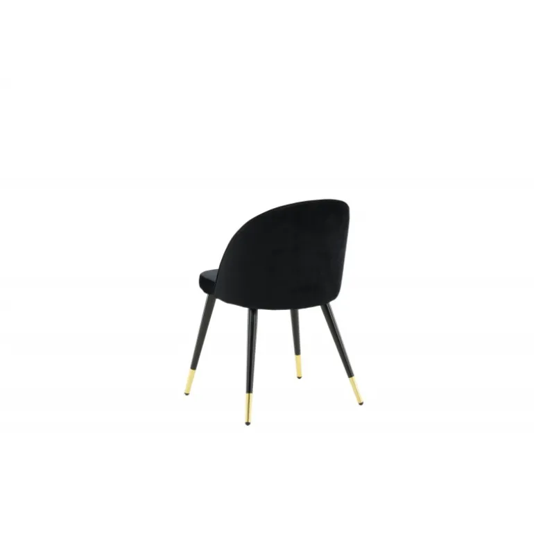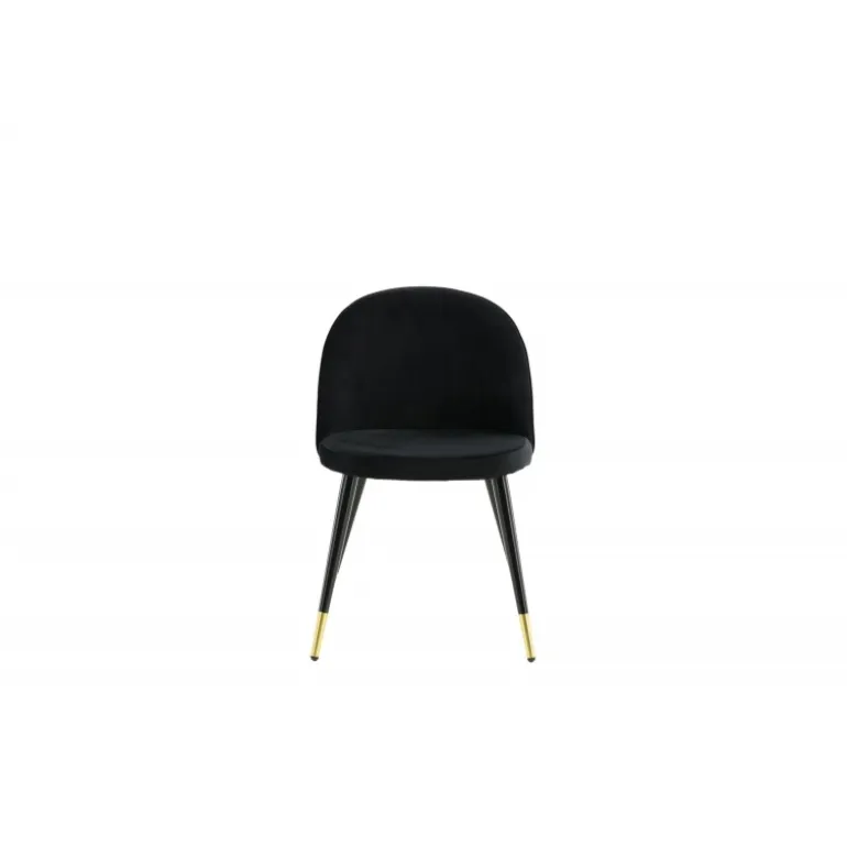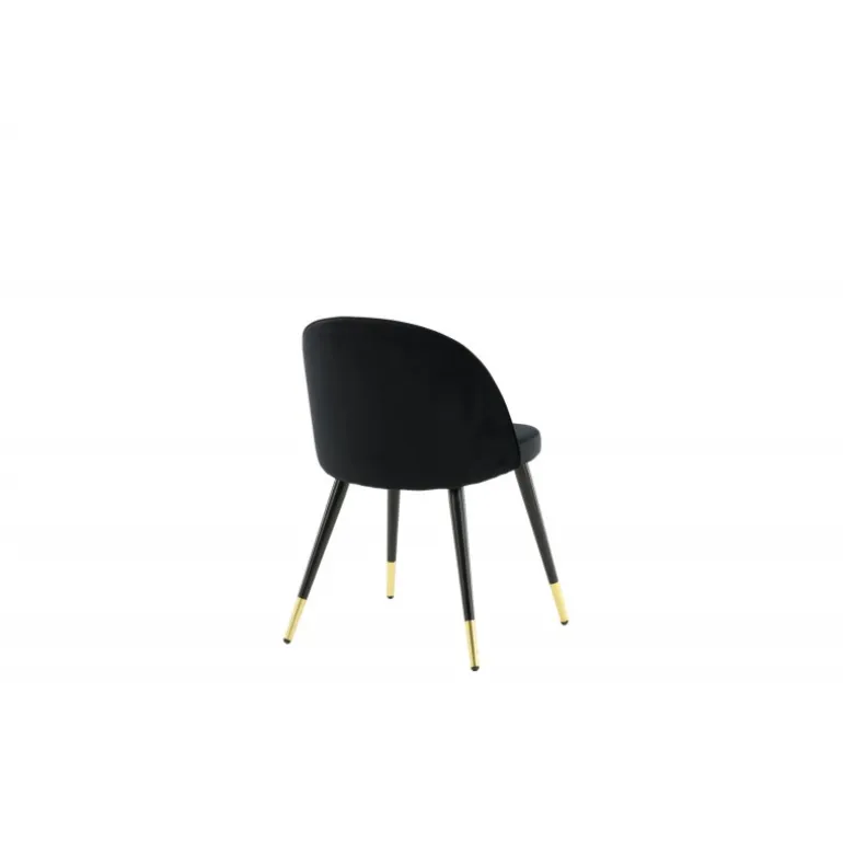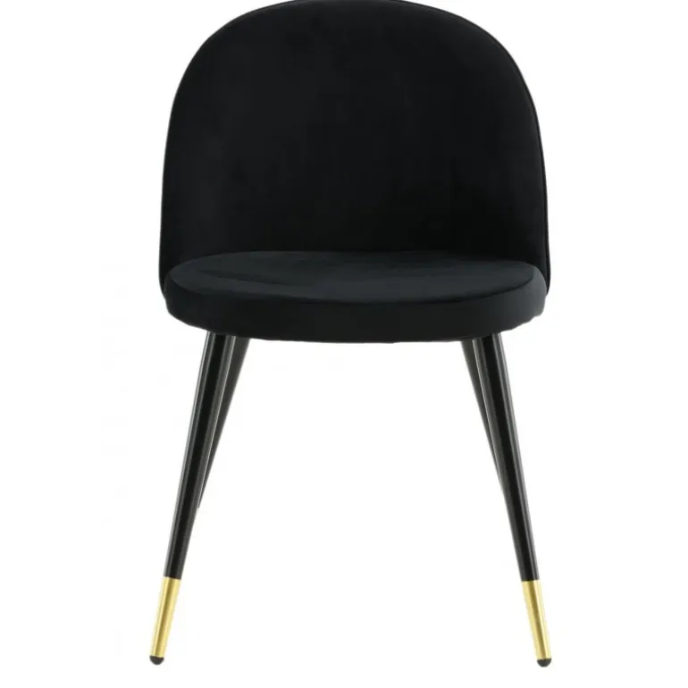 En elegant spisebordsstol med et luksuriøst touch! velour har et fuldt polstret design med ben i sort pulverlakeret metal og moderne messingbelagte benkapper. En let afrundet ryg og sæde i slankt sort velour med blød polstring for ekstra komfort. Nogle samlinger nødvendige. Invester i stole, hvor du ikke behøver at gå på kompromis mellem komfort og design! Plejeinstruktioner: velour har tendens til at få impressionsmærker, når luven sætter sig. Disse mærker kan få stoffet til at se slidt ud, hvilket er normalt for denne type materiale. Afhængigt af hvordan lyset falder, kan stoffet fremstå i flere forskellige nuancer.