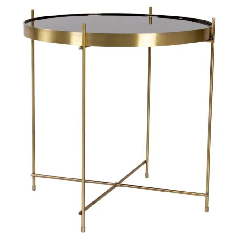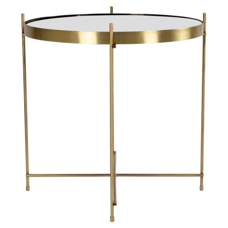 Hjørnebord i messing farvet stål med glasnø48xh48cm