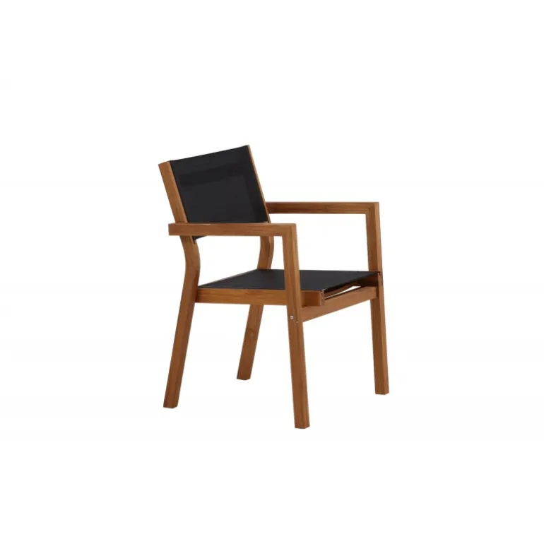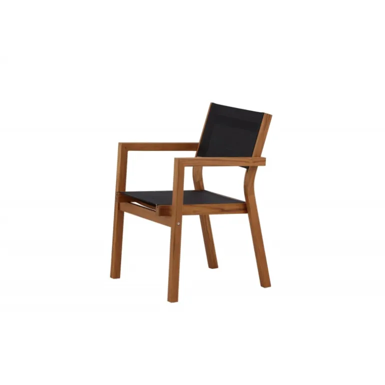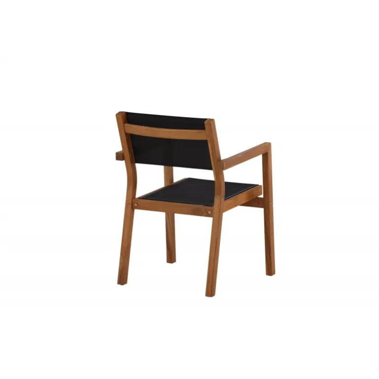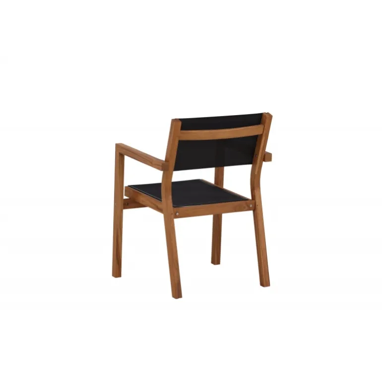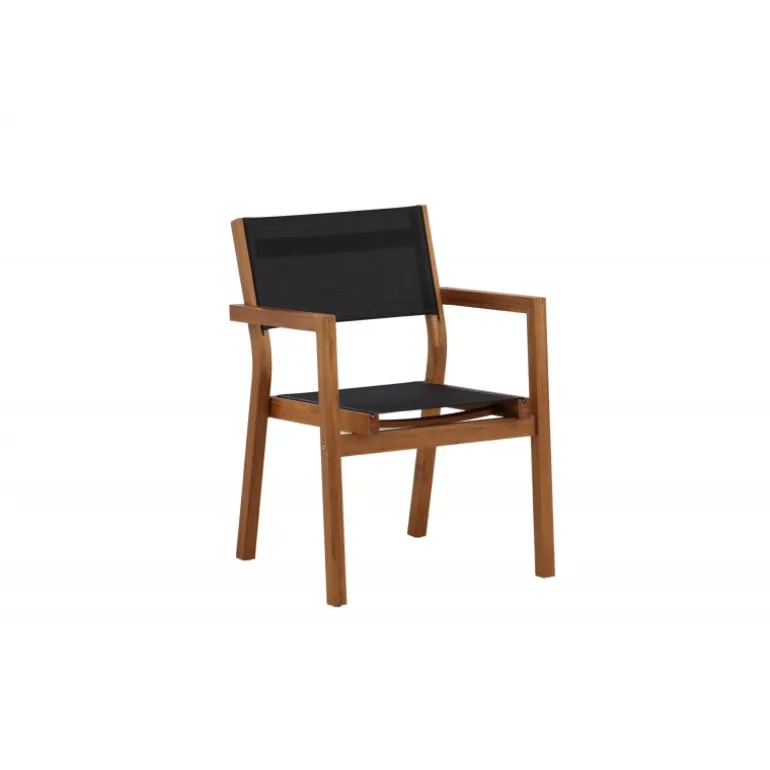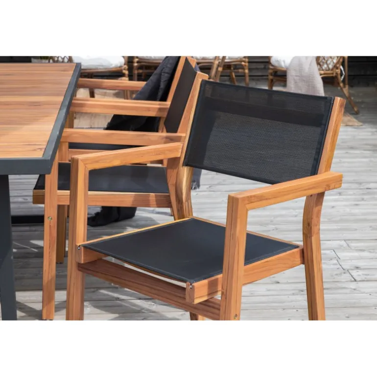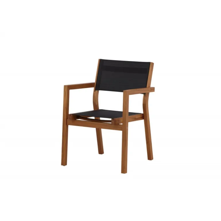 Matching sort og træ føles bare helt rigtigt! Takket være sin stilfulde og moderne karakter bliver denne stol fra Venice-serien noget ekstra specielt. Den holdbare materialekombination af teak og tekstil giver dig en holdbar Havestol til alle lejligheder. Match med et lækkert spisebord og nyd sommerlige måltider. Plejeanvisning: Textilene er et syntetisk stof lavet af PVC-behandlet polyester. Materialet er vandafvisende og UV-behandlet for at modvirke solens blegning. Rengøring bør udføres cirka en gang om måneden, brug en fugtig klud og tør efter.