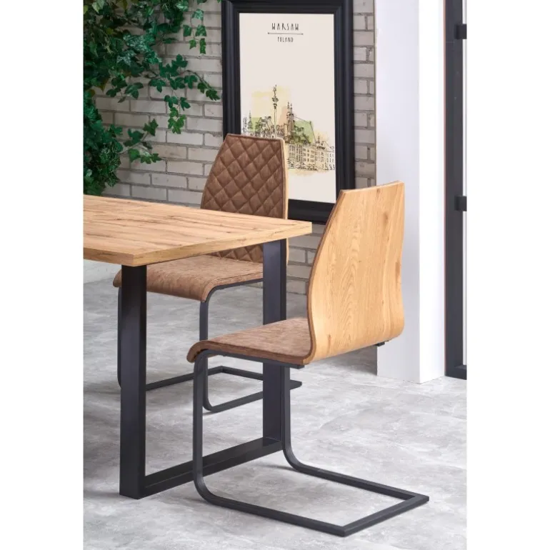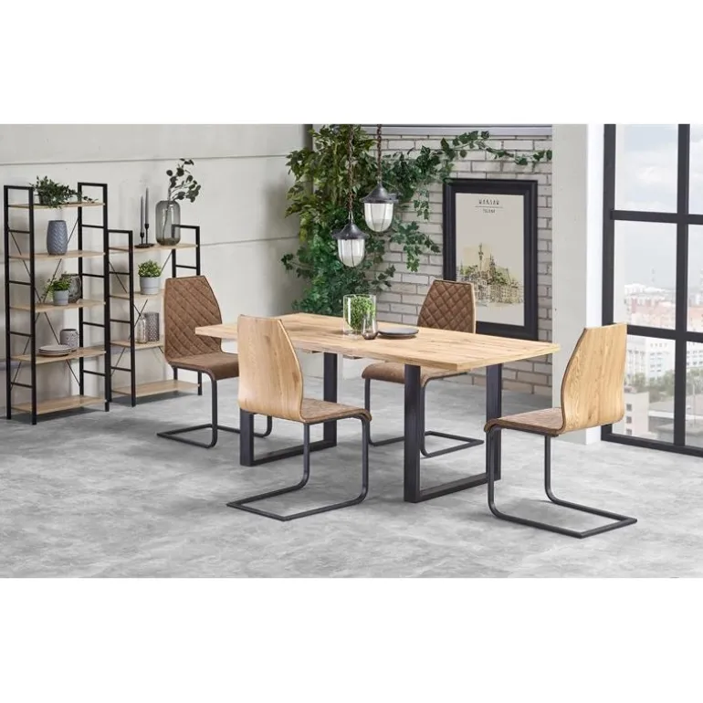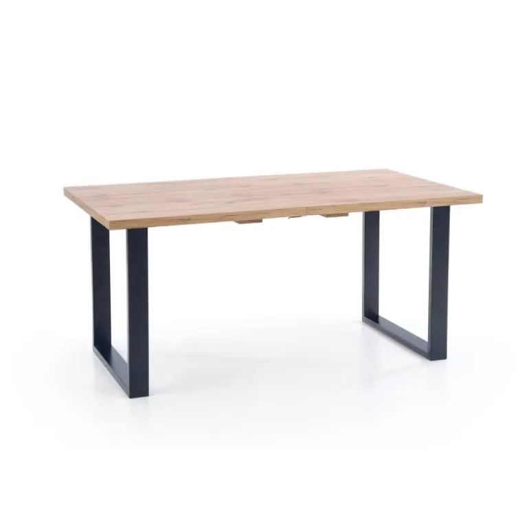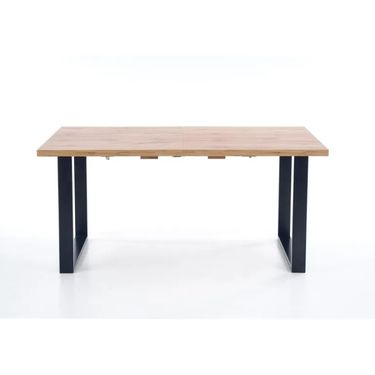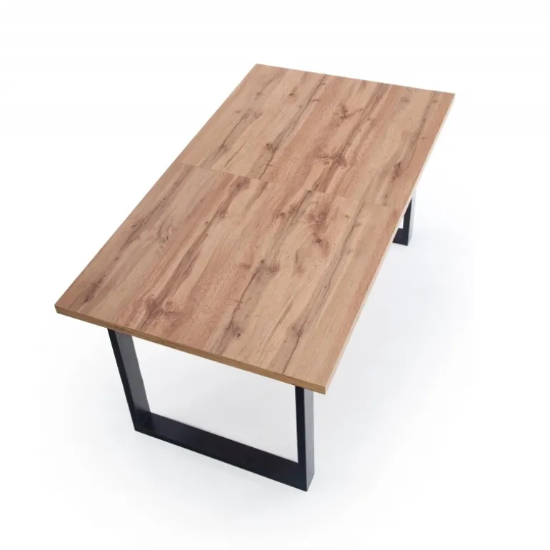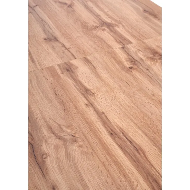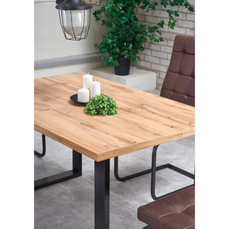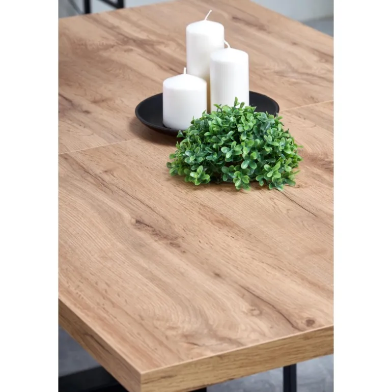 Oplev VENOM 135-185 Spisebord med udtræk, der kombinerer stil og funktionalitet til dit hjem. Med en længde, der kan justeres fra 135 cm til 185 cm, er dette bord perfekt til både intime middage og større sammenkomster. Bordpladen er lavet af lamineret spånplade med ABS plastkanter, hvilket sikrer en lang levetid og nem vedligeholdelse. Benene er fremstillet af pulverlakeret stål i en elegant Sort farve, der giver en moderne kontrast til bordpladens Votan-eg farve. Med en robust konstruktion og et tidløst design er dette Spisebord med udtræk et must-have i ethvert hjem.