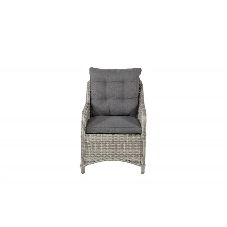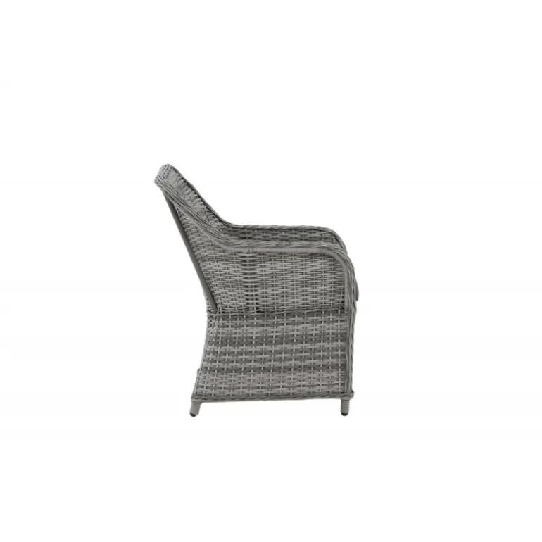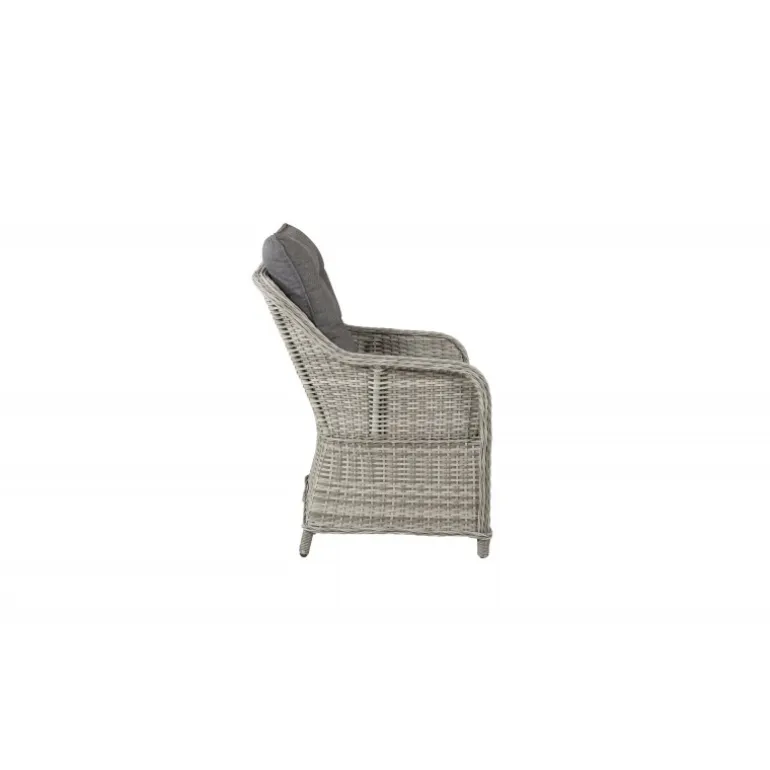 Vikelund, en meget stabil armstol i moderne grå kunstig rattan. Den robuste konstruktion og holdbare materiale giver dig en stol, der holder over tid. Ryglænet kan nemt lægges ned, og de høje armlæn gør, at du sidder komfortabelt tæt på bordet. Nyd mange vidunderlige sommeraftener sammen! Plejeråd: Konstrite er et plastmateriale, der er perfekt til vores skandinaviske klima. Materialet er UV-resistent og kan modstå vejr og vind. UV-resistensen betyder, at møblerne ikke falmer, men vi anbefaler altid at opbevare møblerne under et møbelovertræk eller et andet tørt og køligt sted for at forlænge levetiden.