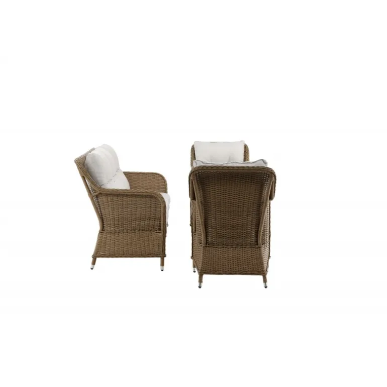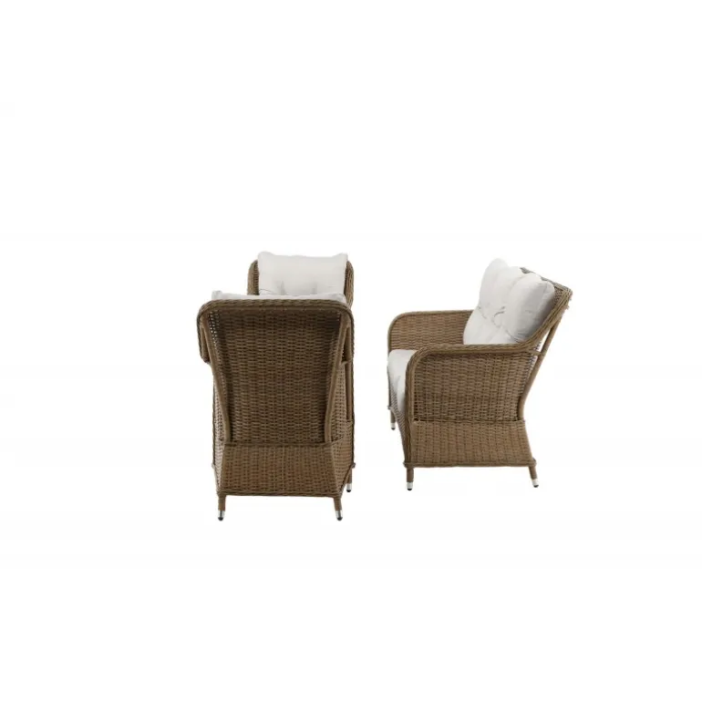- Materiale: Naturfarvet kunstig rattan med aluminiumsramme – UV-resistent og vejrbestandig.