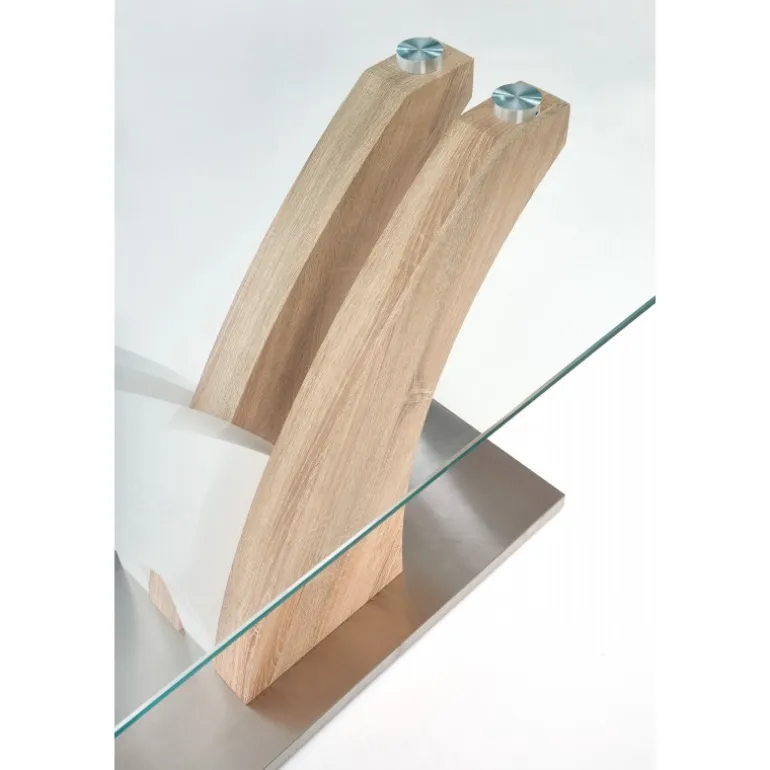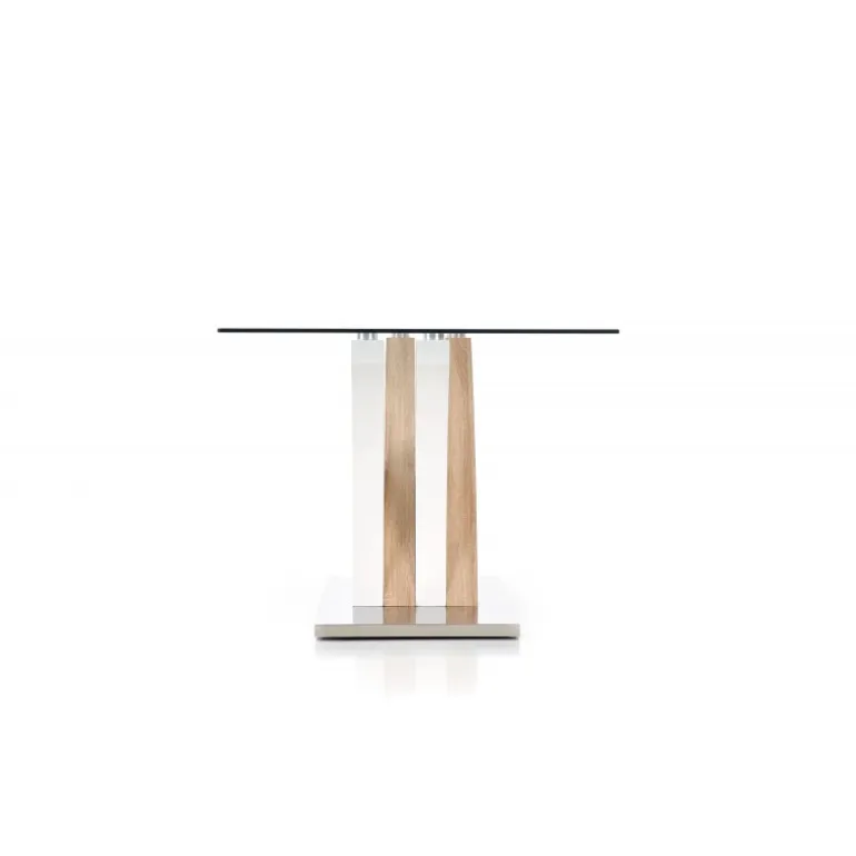 - Kvalitetsmaterialer: Bordplade af glas og ben af lakeret MDF, lamineret MDF og rustfrit stål.