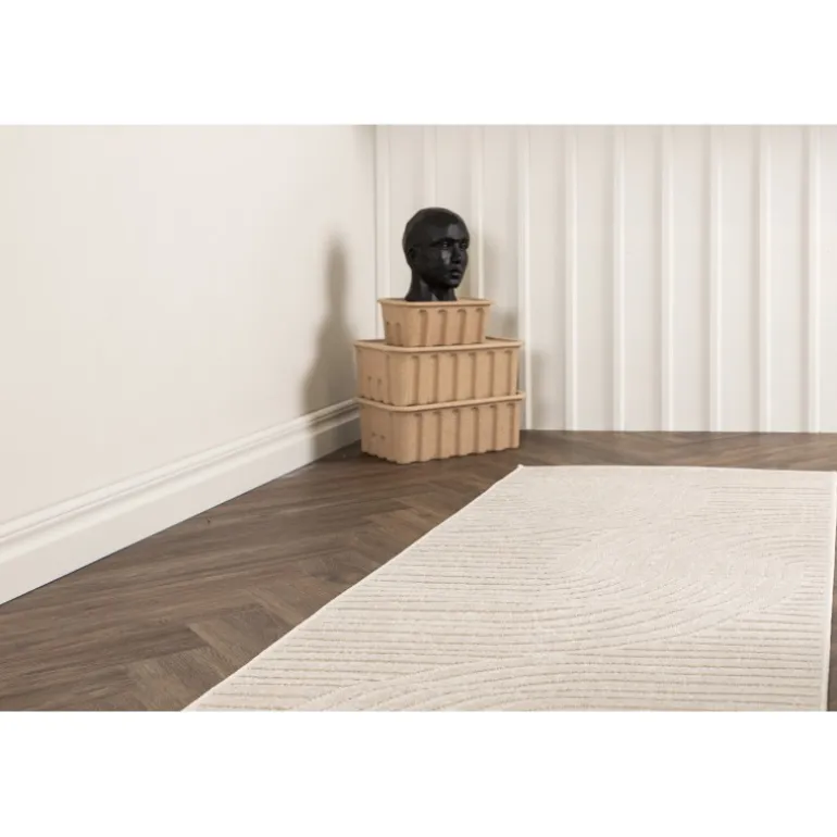 Placering af et langt, smalt tæppe i gangen eller foran sengen giver et enkelt, stilfuldt løft til hele interiøret! Dette trend-sikre tæppe fra Vince-serien har et dekorativt, abstrakt mønster i de tætte frynser, der bidrager til en moderne blikfang. Det bløde materiale og den cremehvide farve tilføjer en varme til atmosfæren i rummet og passer godt sammen med andre møbler. Giv dit hjem et charmerende boost! Tæppemål: 200×80 cm.