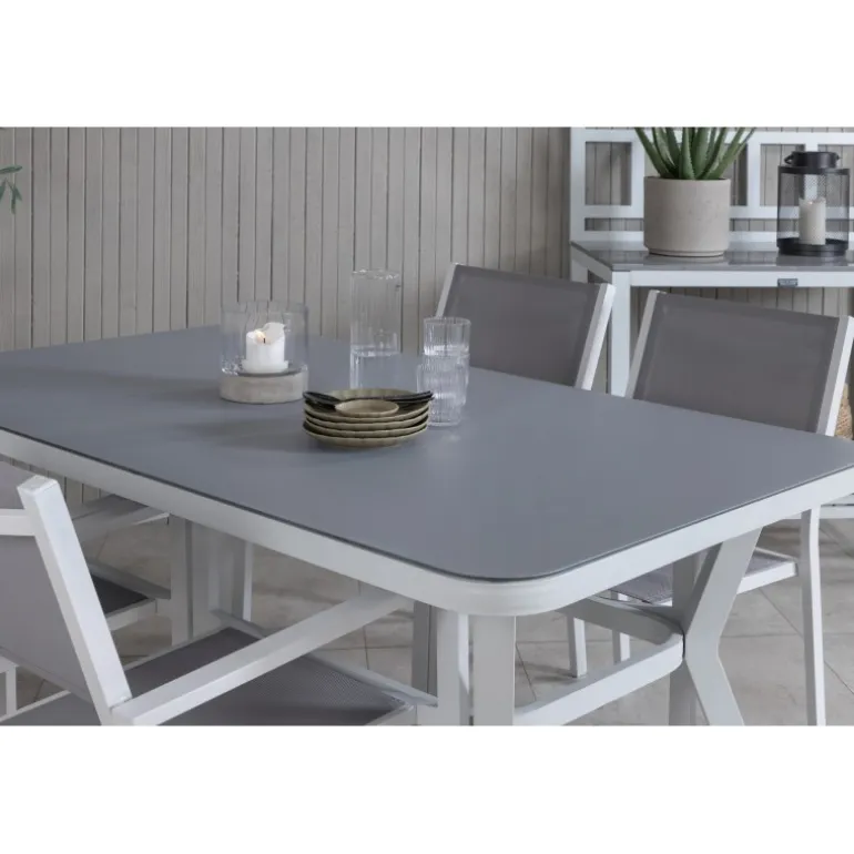 Klassisk madgruppe der passer til de fleste terrasser! Spisebordet Virya sammen med stole fra Copacabana-serien er som skabt til dem, der ønsker at skabe en hyggelig og moderne stemning på altanen. Høj kvalitet og stilfuldt design gør dette sæt til det perfekte valg for udendørs spisning.