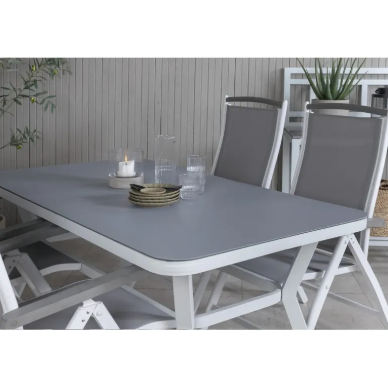 Køb af en forudsamlet Loungesæt – Havemøbelsæt er både trendsikker og praktisk! Her kombinerer vi vores spisebord Virya med vores komfortable Albany spisebordsstole. Lad terrassen blive præget af din nye iøjnefaldende Loungesæt – Havemøbelsæt. Virya Rektangulær Loungesæt – Havemøbelsæt er designet til at give dig en stilfuld og funktionel udendørs spiseoplevelse. Med materialer som aintwood, aluminium, spraystone og textilene er sættet både holdbart og let at vedligeholde. Saml dine venner og familie til hyggelige måltider i det fri.