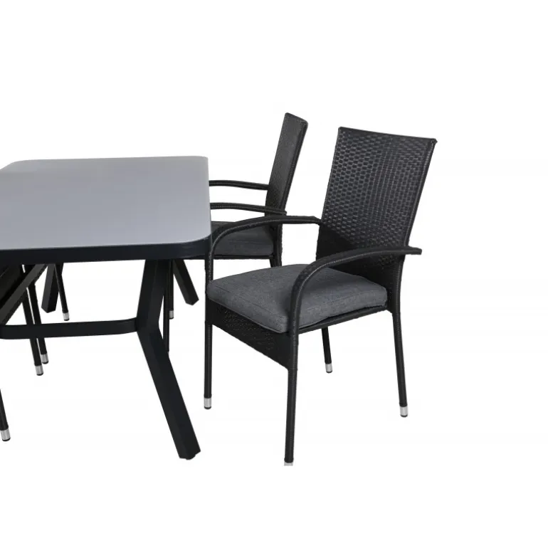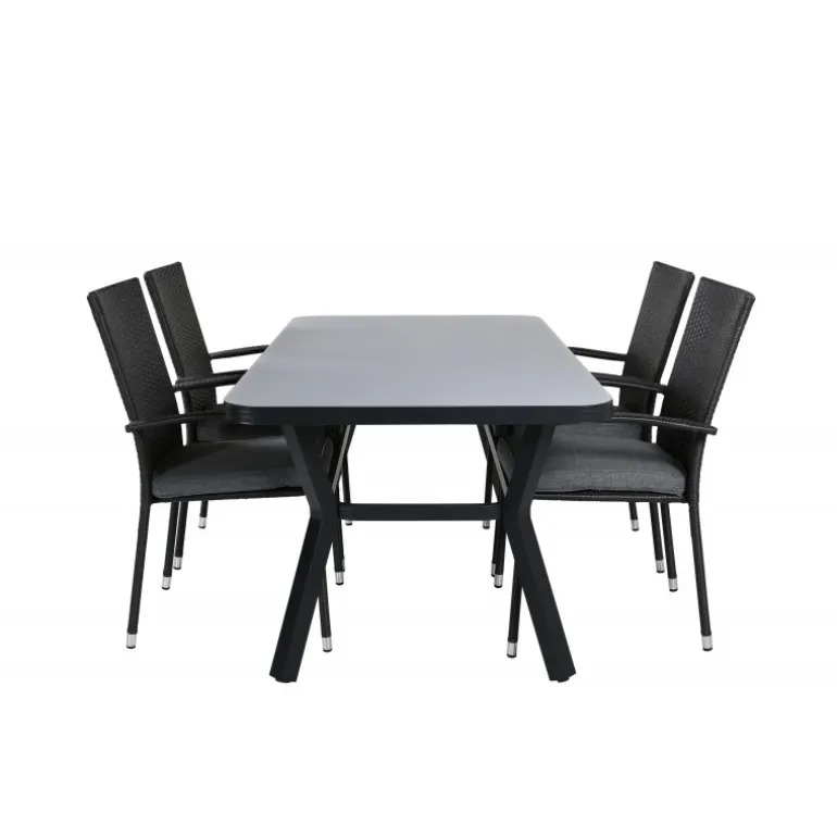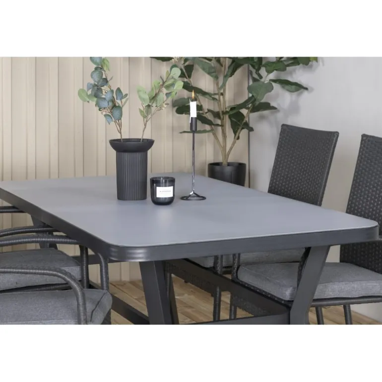 Det klassiske Virya Rektangulære Loungesæt – Havemøbelsæt passer perfekt til de fleste terrasser! Spisebordet Virya sammen med stolene i Anna-serien er skabt til dem, der ønsker at skabe en hyggelig og moderne atmosfære på altanen. Aluminiumsrammen og spraystone bordpladen sikrer både holdbarhed og stil. Stolene er lavet af rattan og stål for maksimal komfort og stabilitet. Dette sæt er ideelt for dem, der elsker at nyde udendørs måltider med familie og venner.