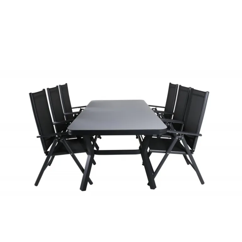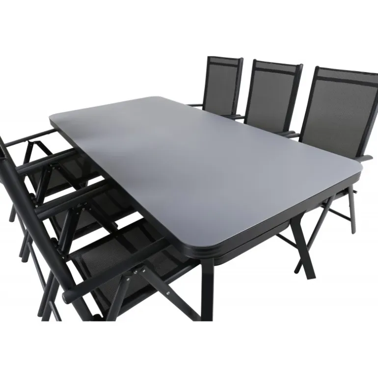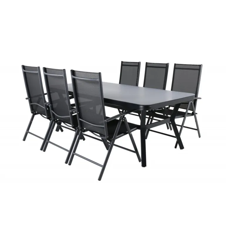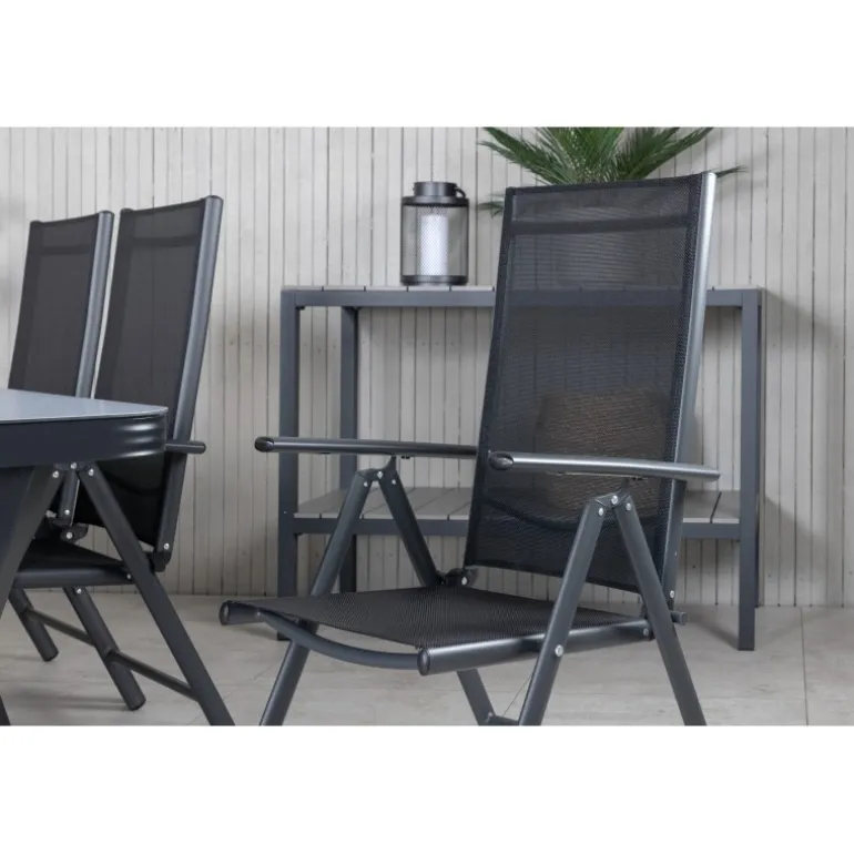 Lad dette smukt matchede madgruppe med en moderne følelse blive et naturligt samlingspunkt på balkonen. Spisestolene Break har god komfort, og spisebordet Virya sikrer, at du ikke behøver at bekymre dig om, hvorvidt der er plads til alle. Med holdbare materialer som aluminium og spraystone er dette sæt både stilfuldt og praktisk til udendørs brug.