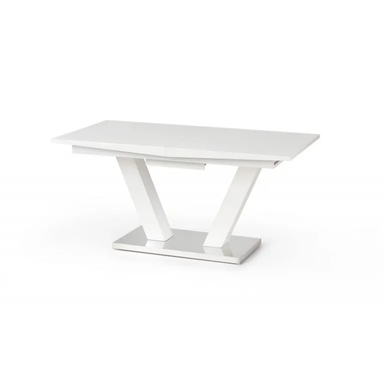 Oplev den perfekte blanding af stil og funktionalitet med VISION bordet. Dette forlængelsesbord er ideelt til både små og store sammenkomster, da det kan udvides fra 160 cm til 200 cm. Fremstillet af lakeret MDF og rustfrit stål, tilbyder dette bord en slank og moderne løsning til dit hjem. Bordet har en elegant hvid farve, der passer ind i enhver indretning.